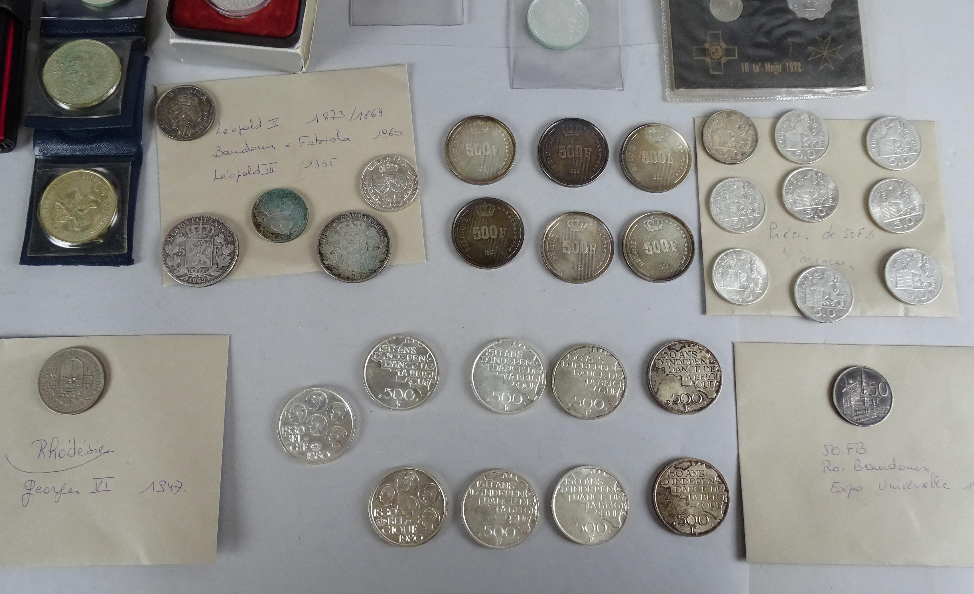 Collection de pièces de monnaie: carton avec pièces dont la majorité est en argent total 1005g d'Ag pur