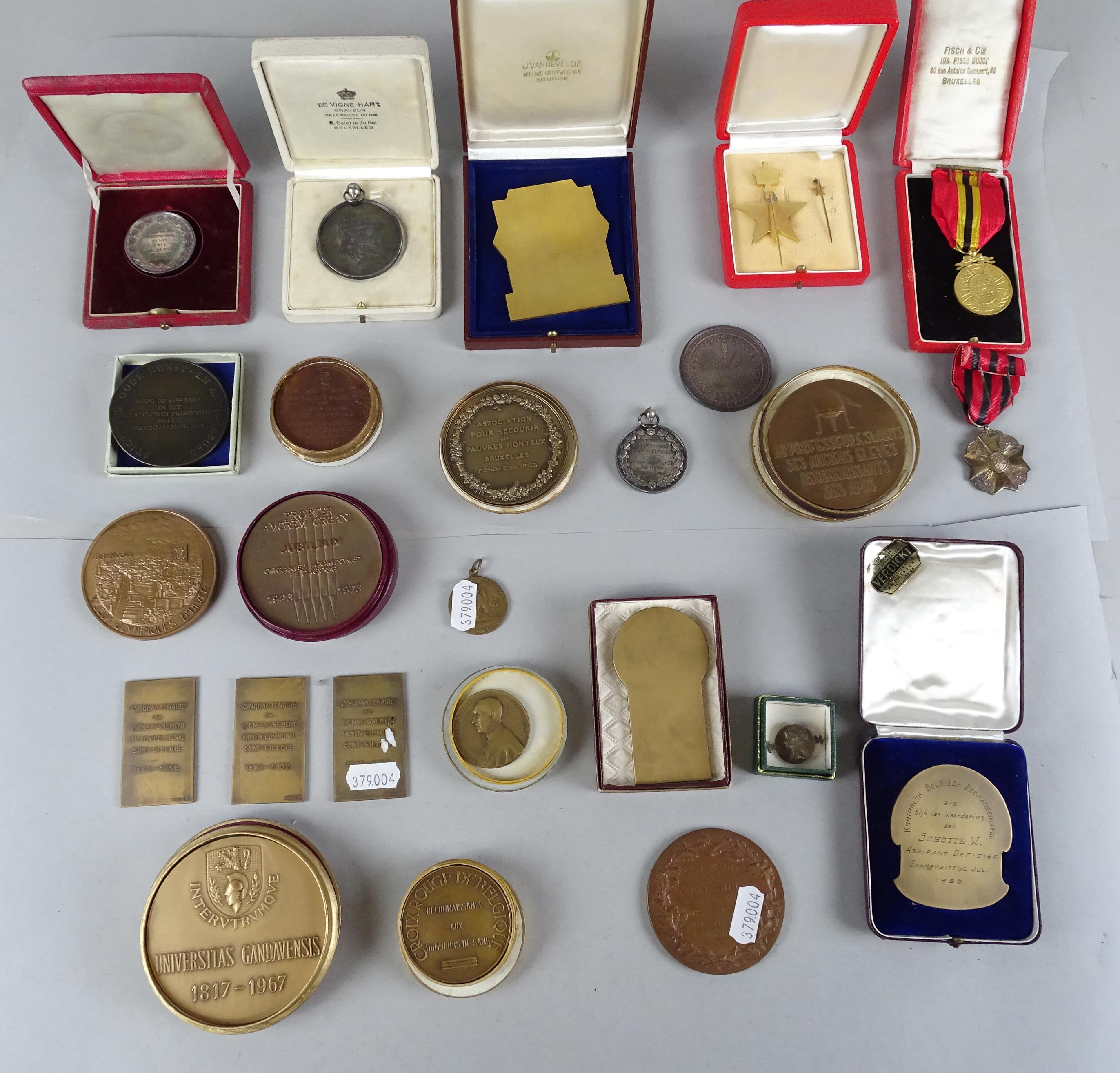 Collection: (25pcs) 5 médailles en argent Ptotal:140g + 17 médailles en bronze dont: l'Effort de DUPON, Jeux Grenoble 1968 COEFFIN... + 3 médailles militaires