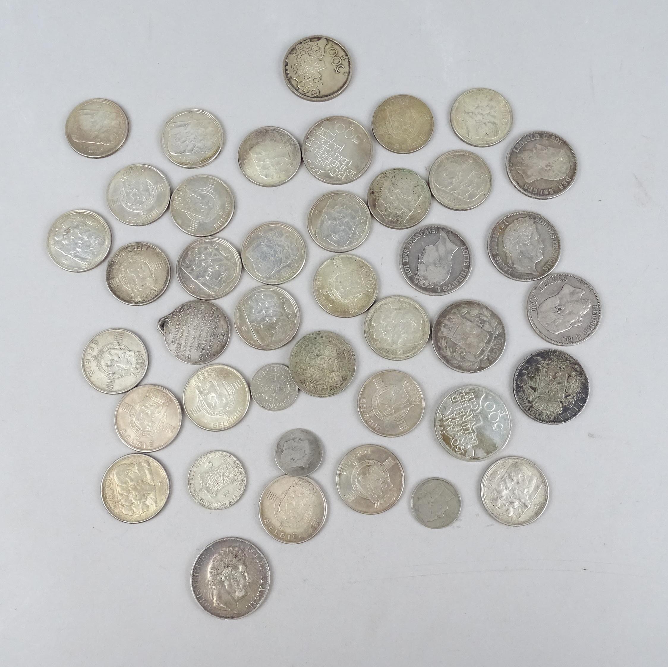 Collection de pièces de monnaie : beau petit lot de pièces en argent belges et françaises (avec pièce de 5FF 1829 D)