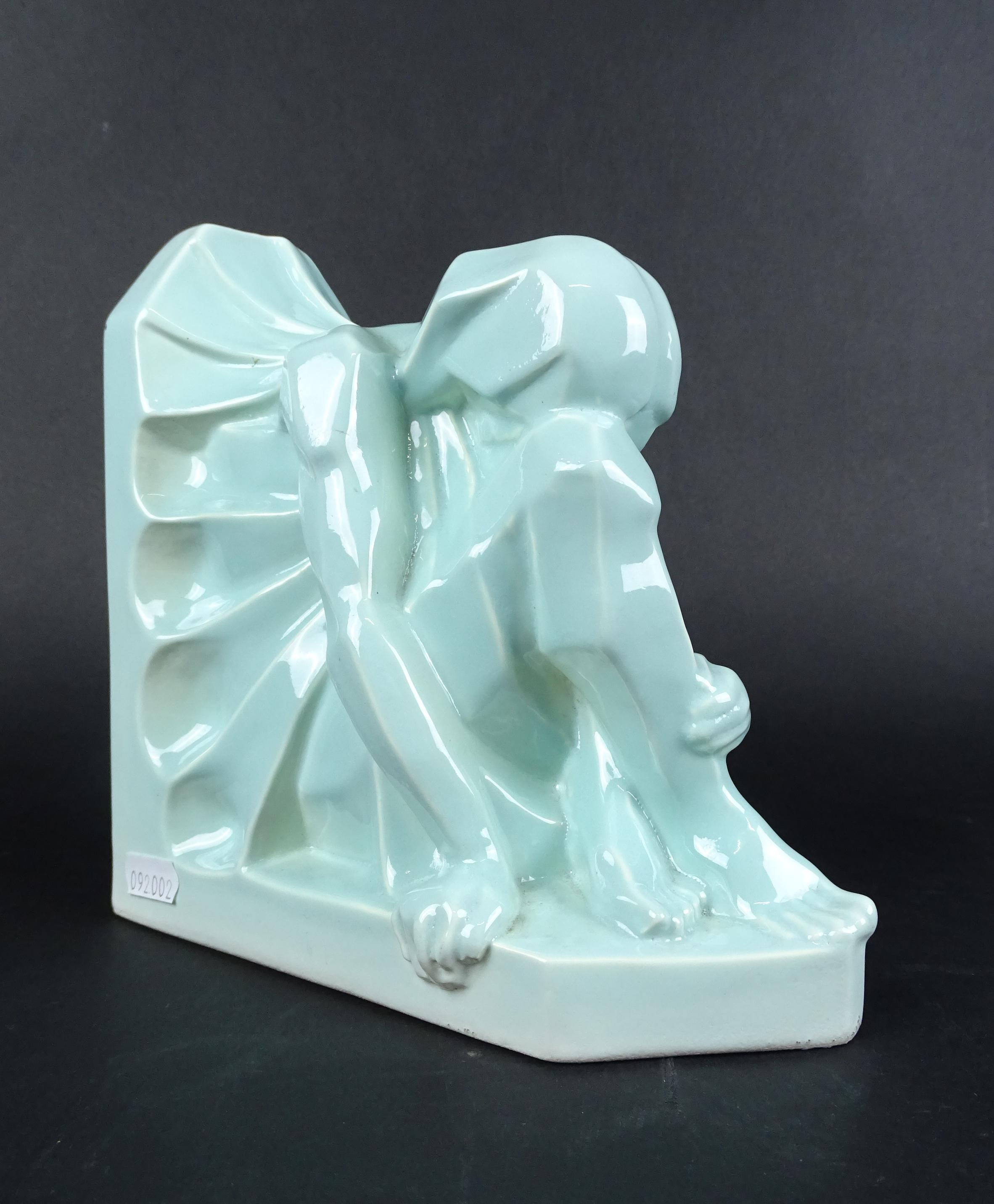 Céramique: Faïence verte Boch Kéramis -Dame assise- signé ANGELO pour HECK Angel