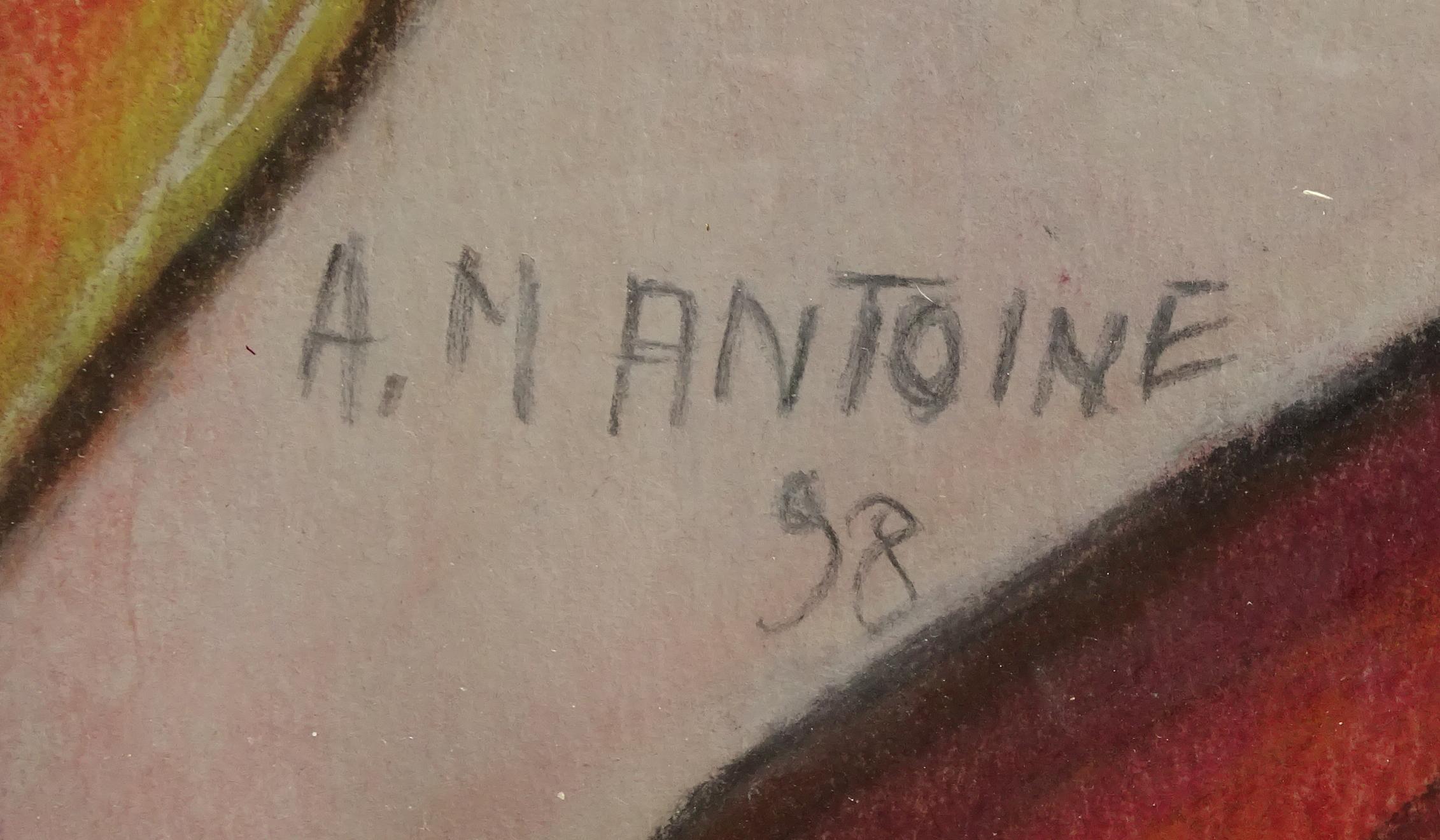 Tableau pastel -Les feux de l'amour-98 signé *ANTOINE A-M.* (Anne-Marie) (1944) 54x69cm cadre doré s/v repris dans le catalogue A.M. Antoine