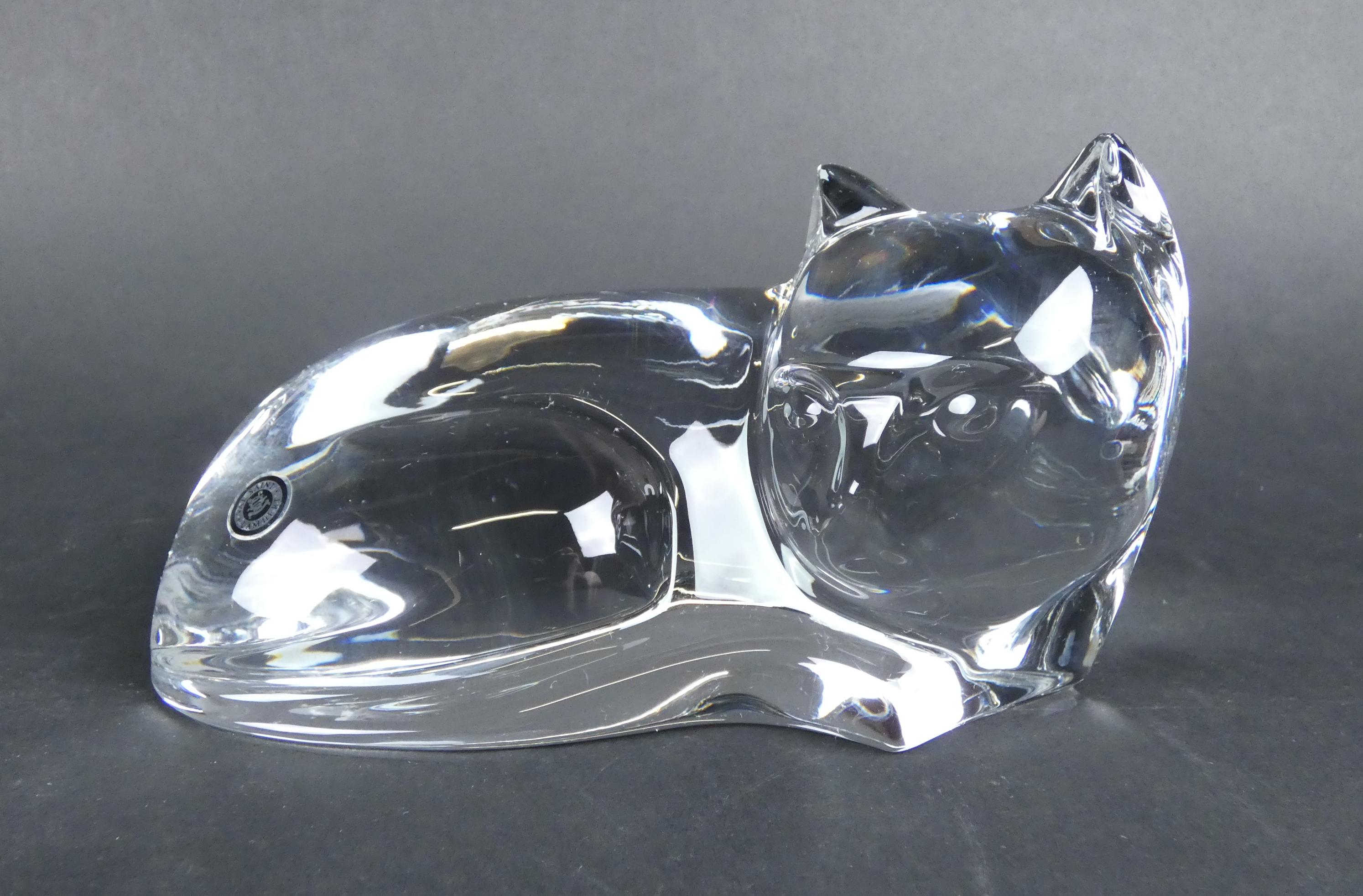 Verrerie: Chat en cristal signé Val Saint Lambert H:7cm L:16cm