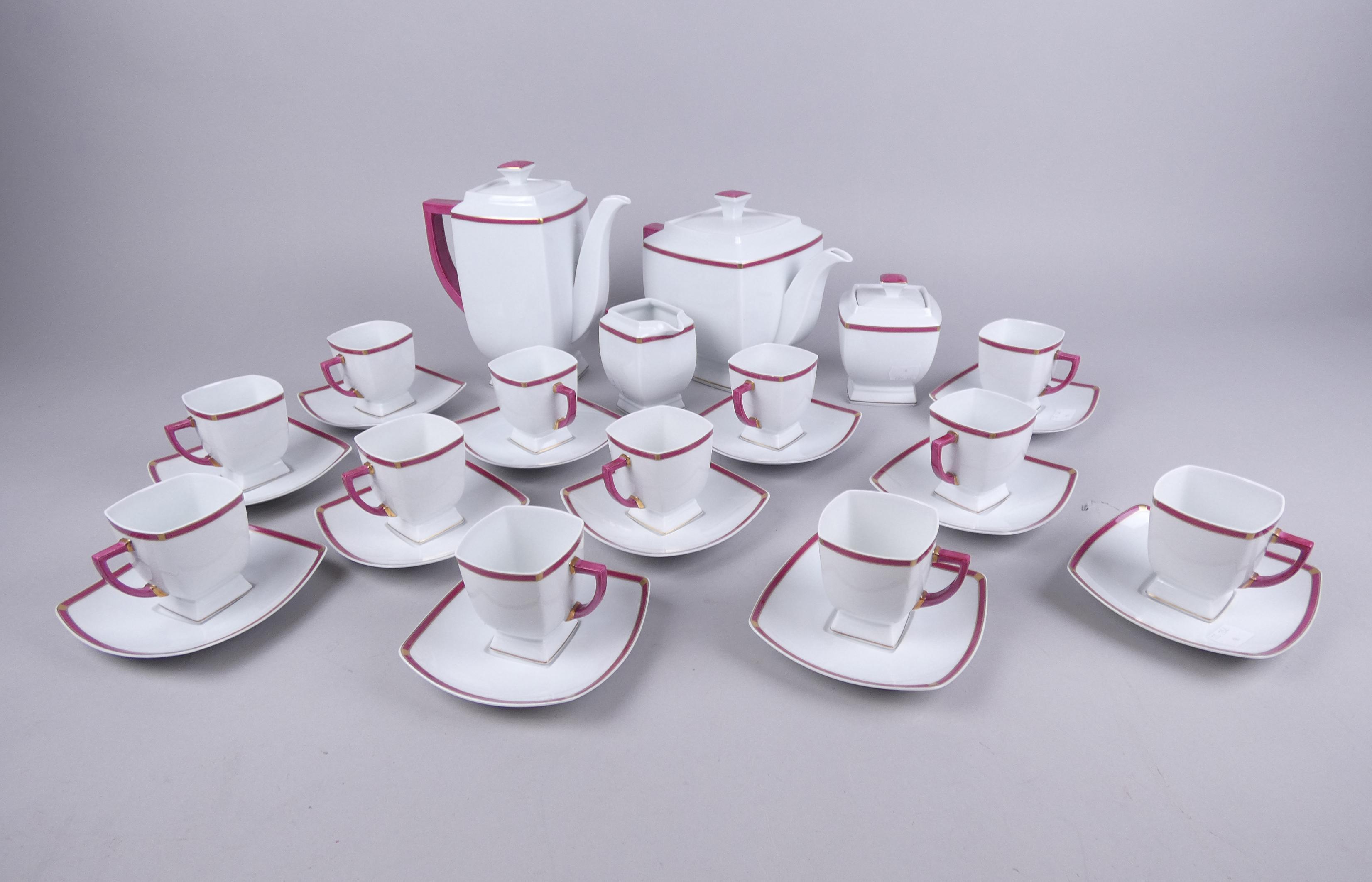 Céramique: service à café et à thé en porcelaine de Limoges modèle Coquet forme Prélude (16pcs): cafetière, théière, sucrier, pot à lait, 12 tasses et sous tasses