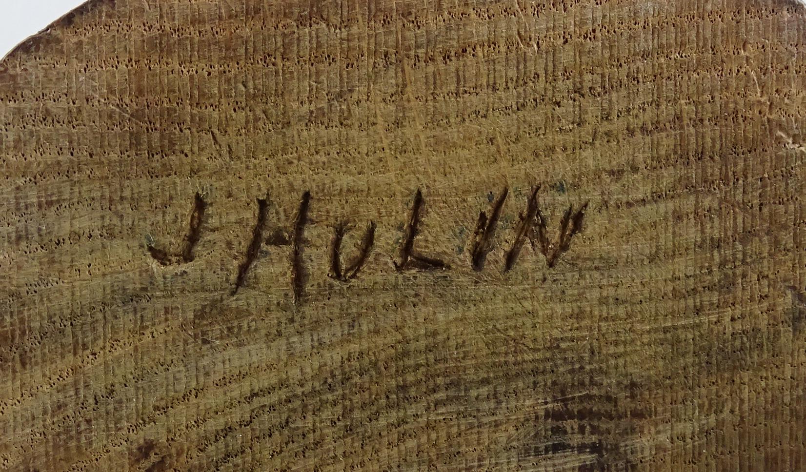 Sculpture: Possible -Sainte Catherine d'Alexandrie- en chêne sculpté signé sous la base HULIN J. fin 19e début 20eS H:31,5cm