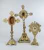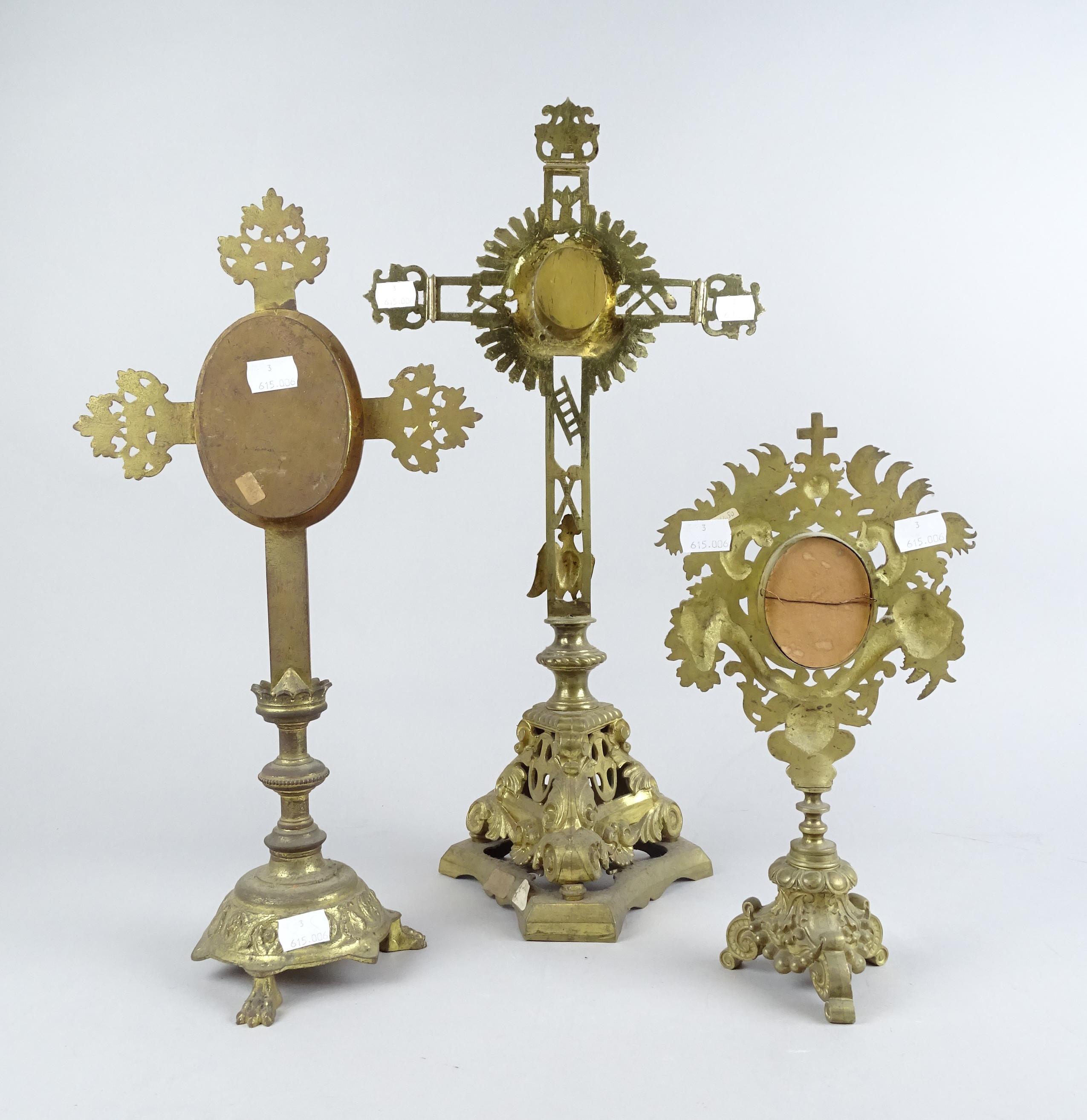 Religieux: 3 ostensoirs en laiton (acc, mq) H: de 30 à 50cm
