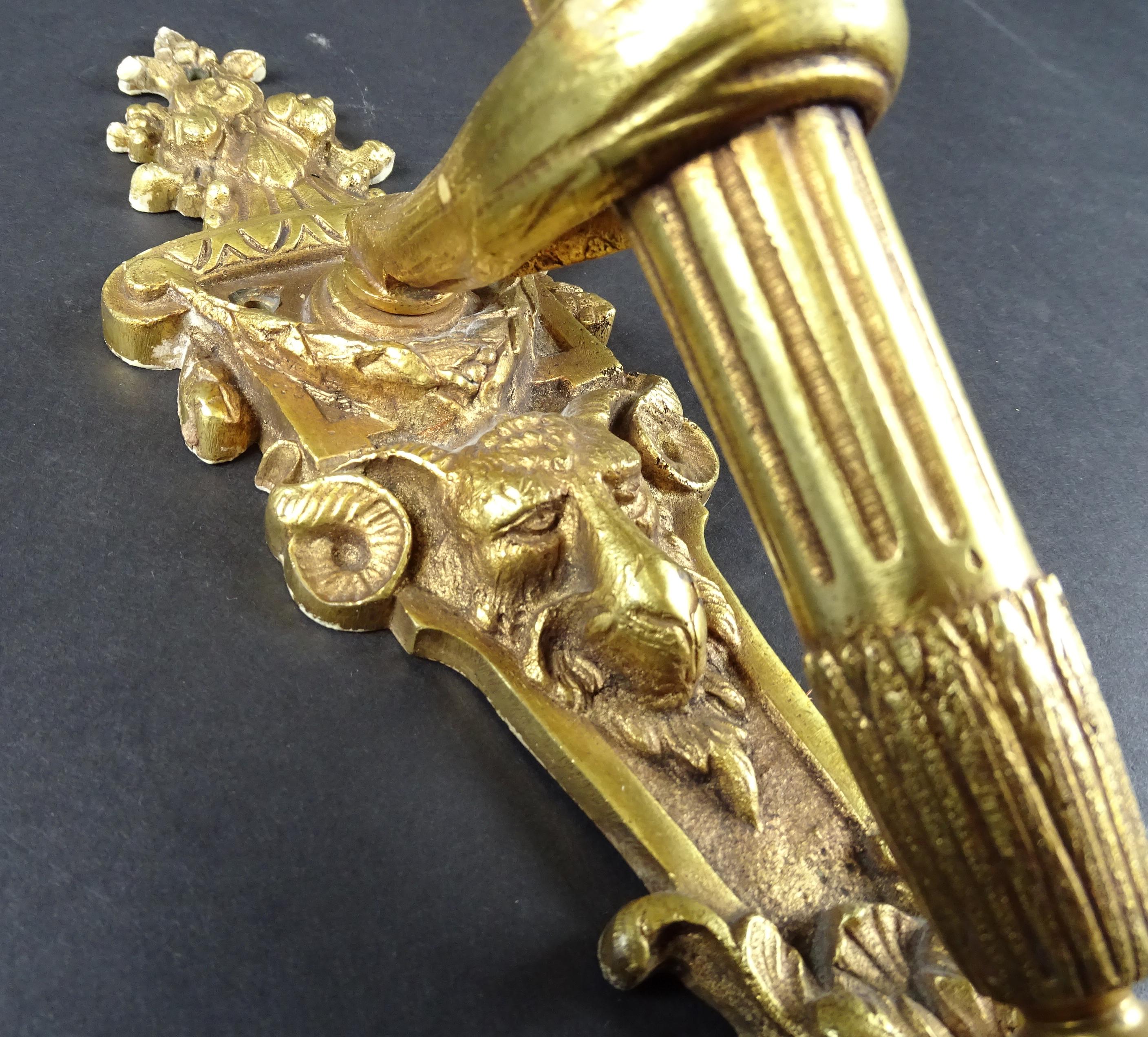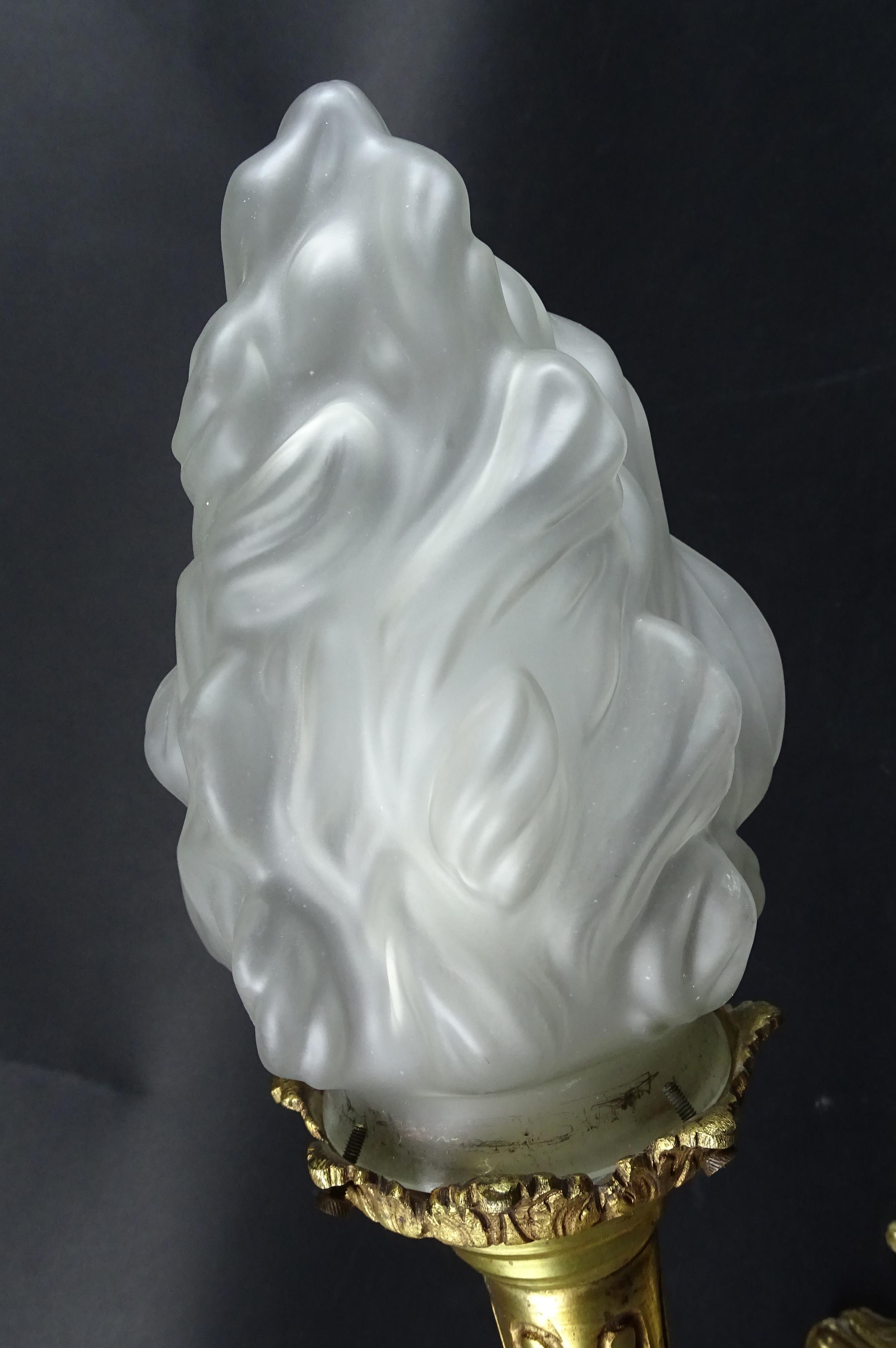 Meuble: Applique flambeau en bronze avec bobèche en verre maté H:48cm