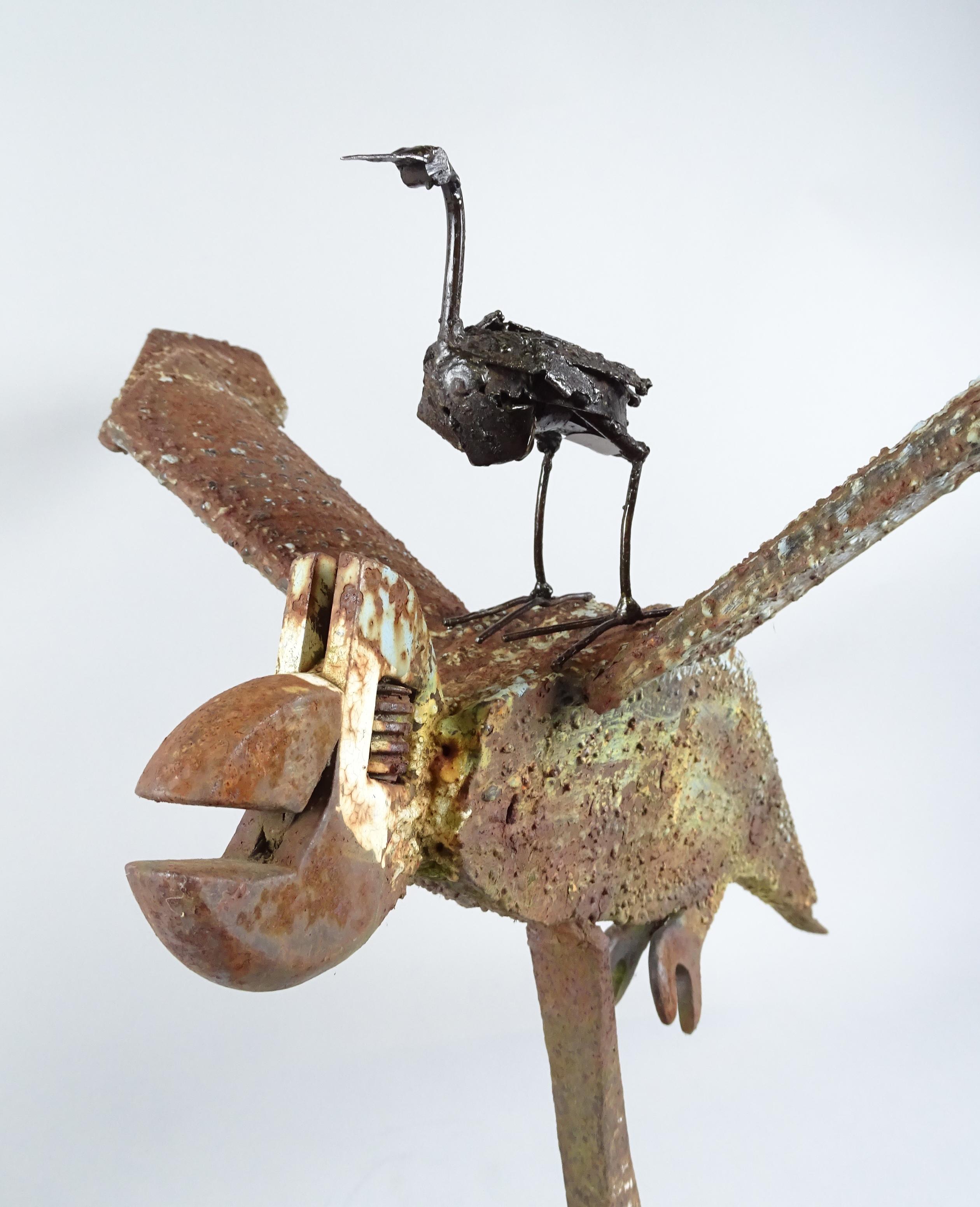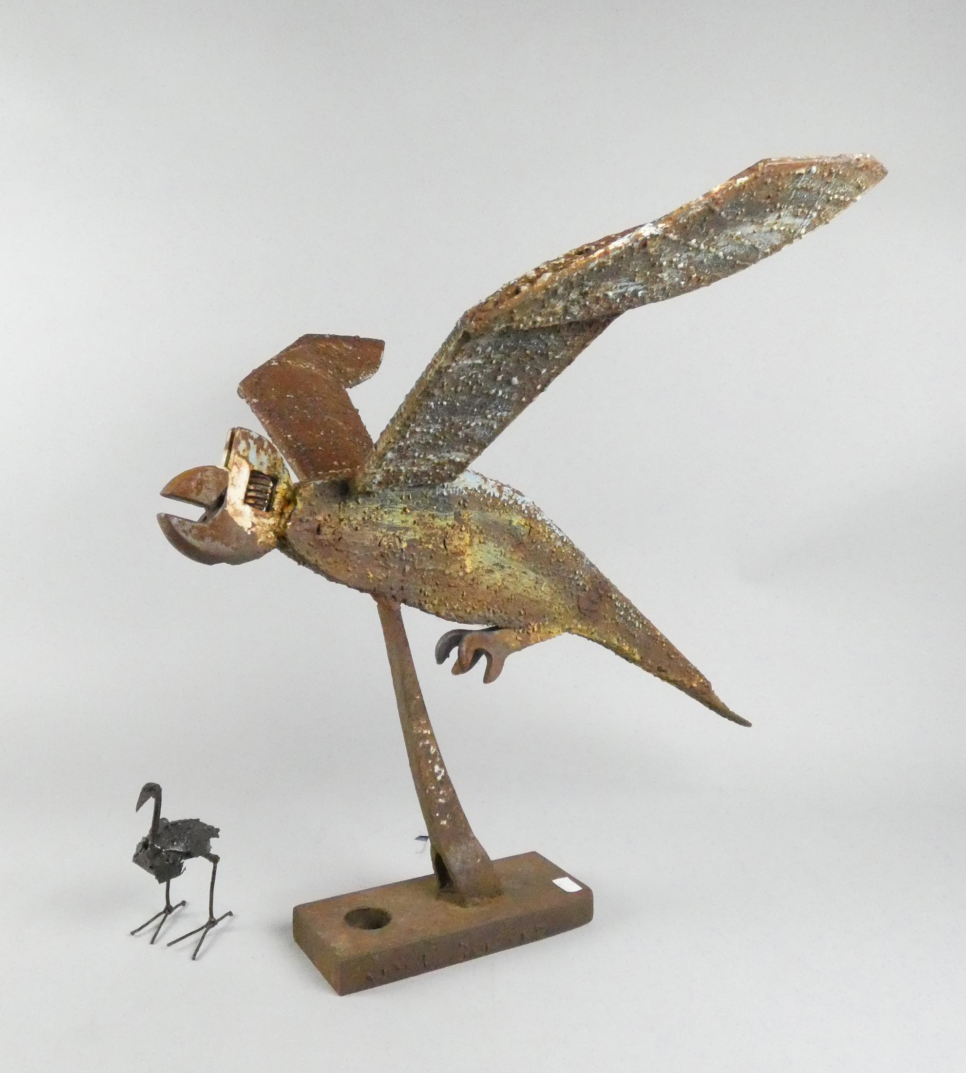 Sculpture: (2pcs) en métal -Le Toucan- possible signature sur la base 60x68x63cm + -Le Héron- H:15cm