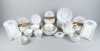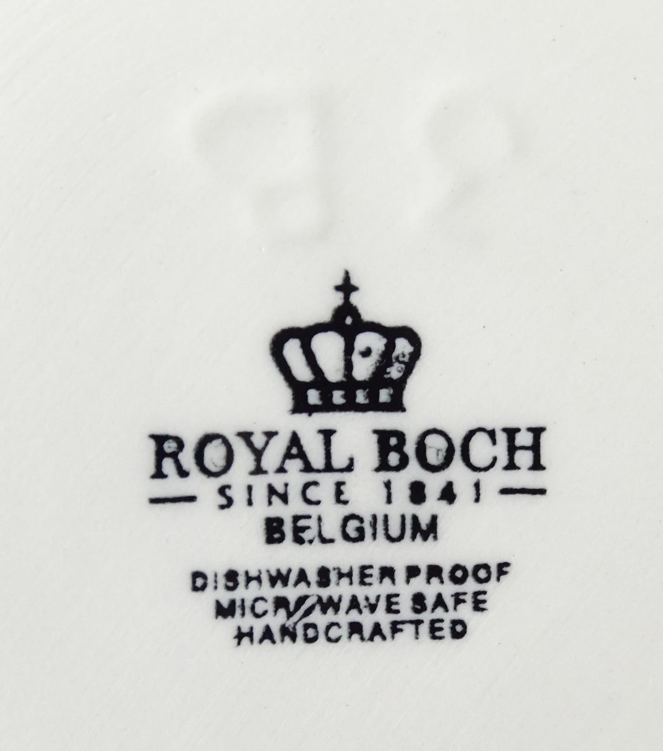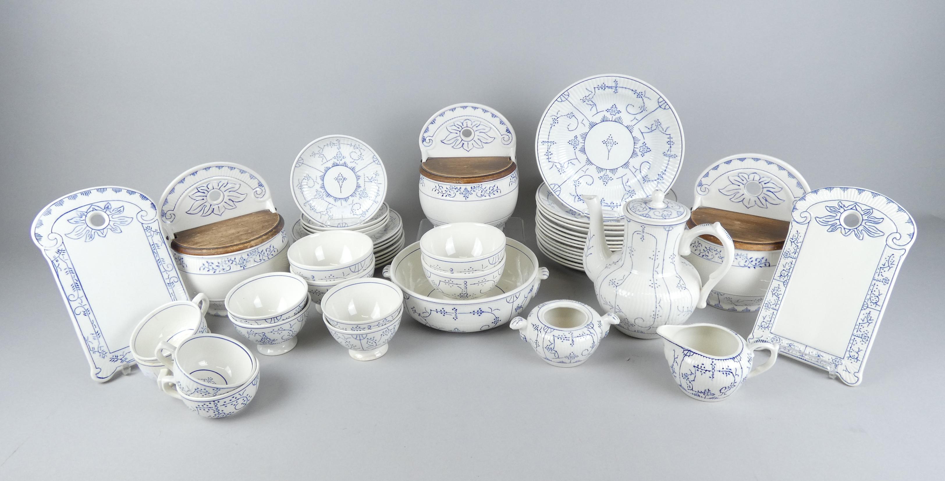 Céramique: Partie de service en faïence (usures d'usages, mélange d'un modèle ancien et récent) BOCH modèle COPENHAGUE (+/-44pcs) dont: 3 btes à épices, salad, cafet,.
