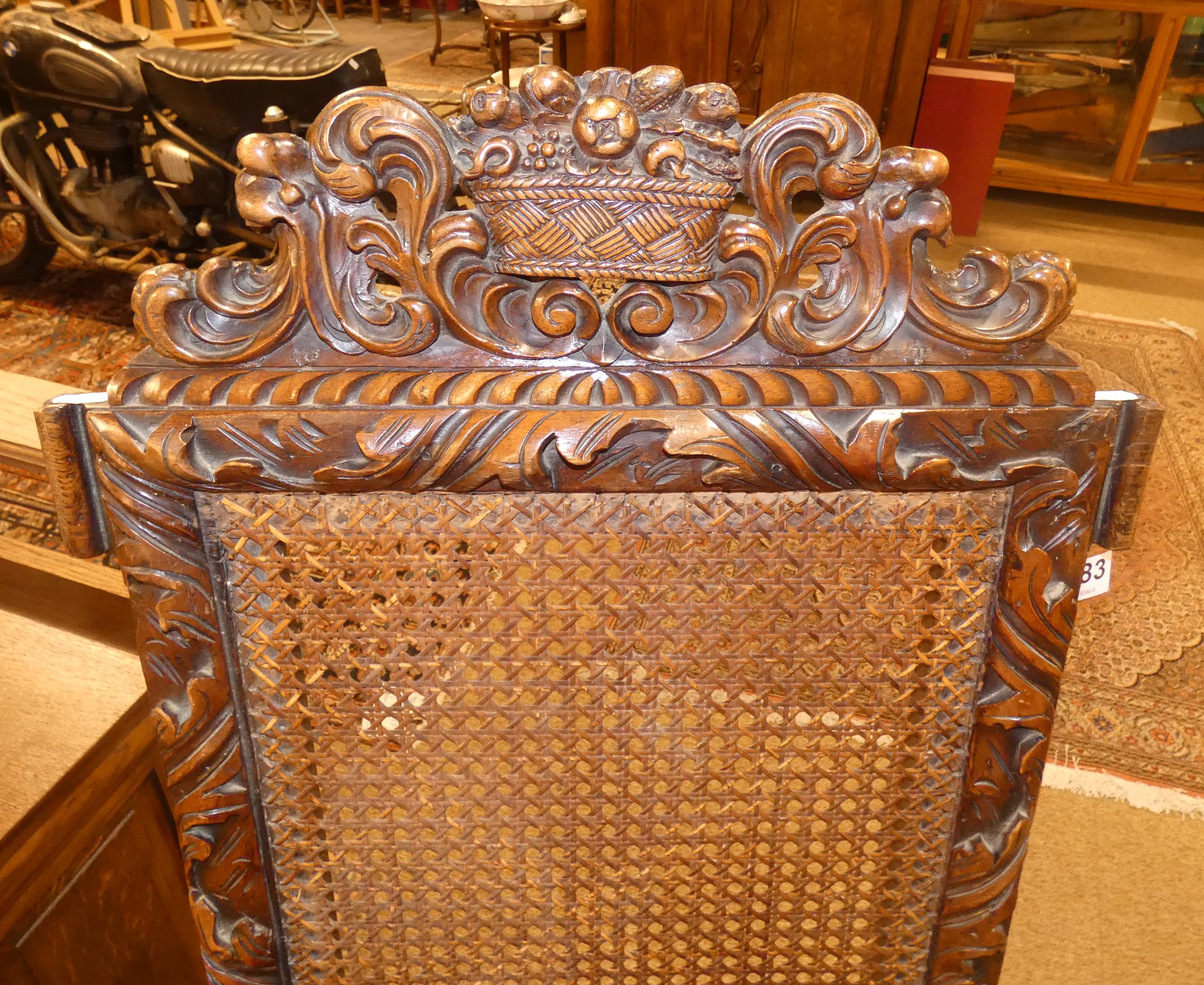 Meuble:Chaise de style Louis XIII Néo-Renaissance dossier canné et tissu velours (acc) H:152cm