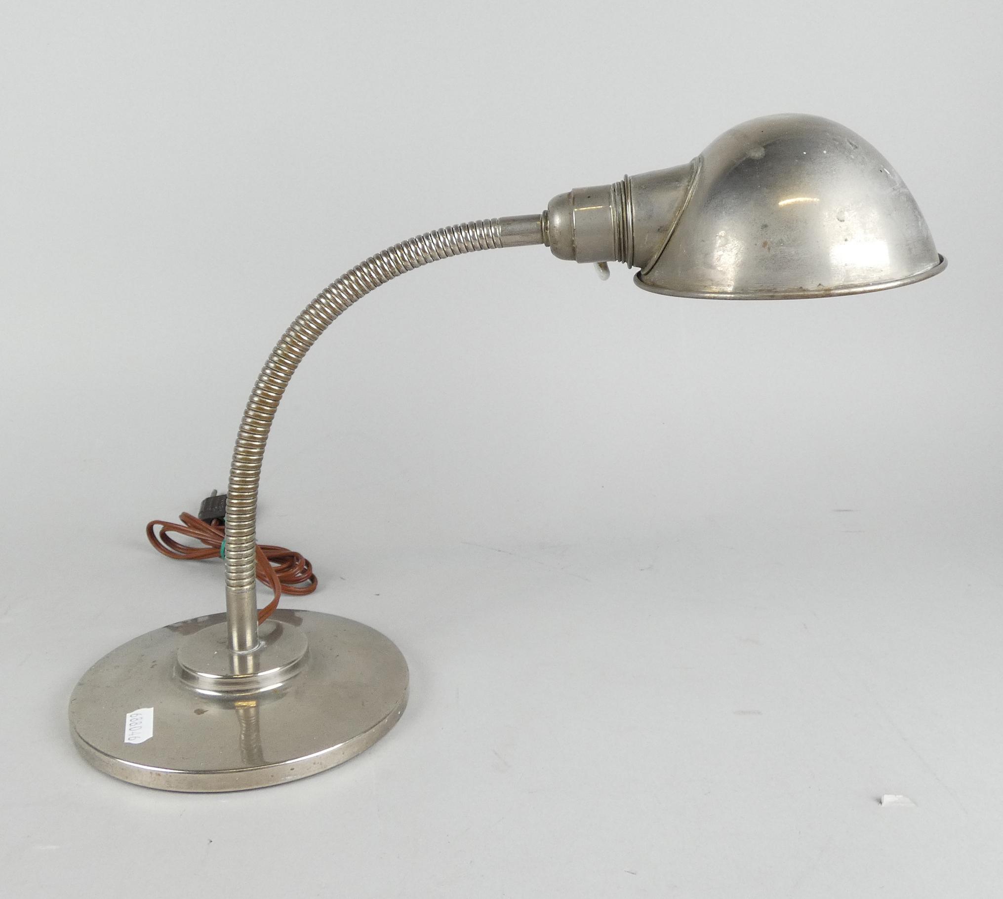 Luminaire: Lampe de bureau/ atelier Vintage chrome patiné H:env33cm (usure, pt o