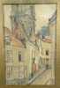 Tableau: aquarelle -Vue de la rue Cronque sur le beffroi de Mons- signé PUTSAGE