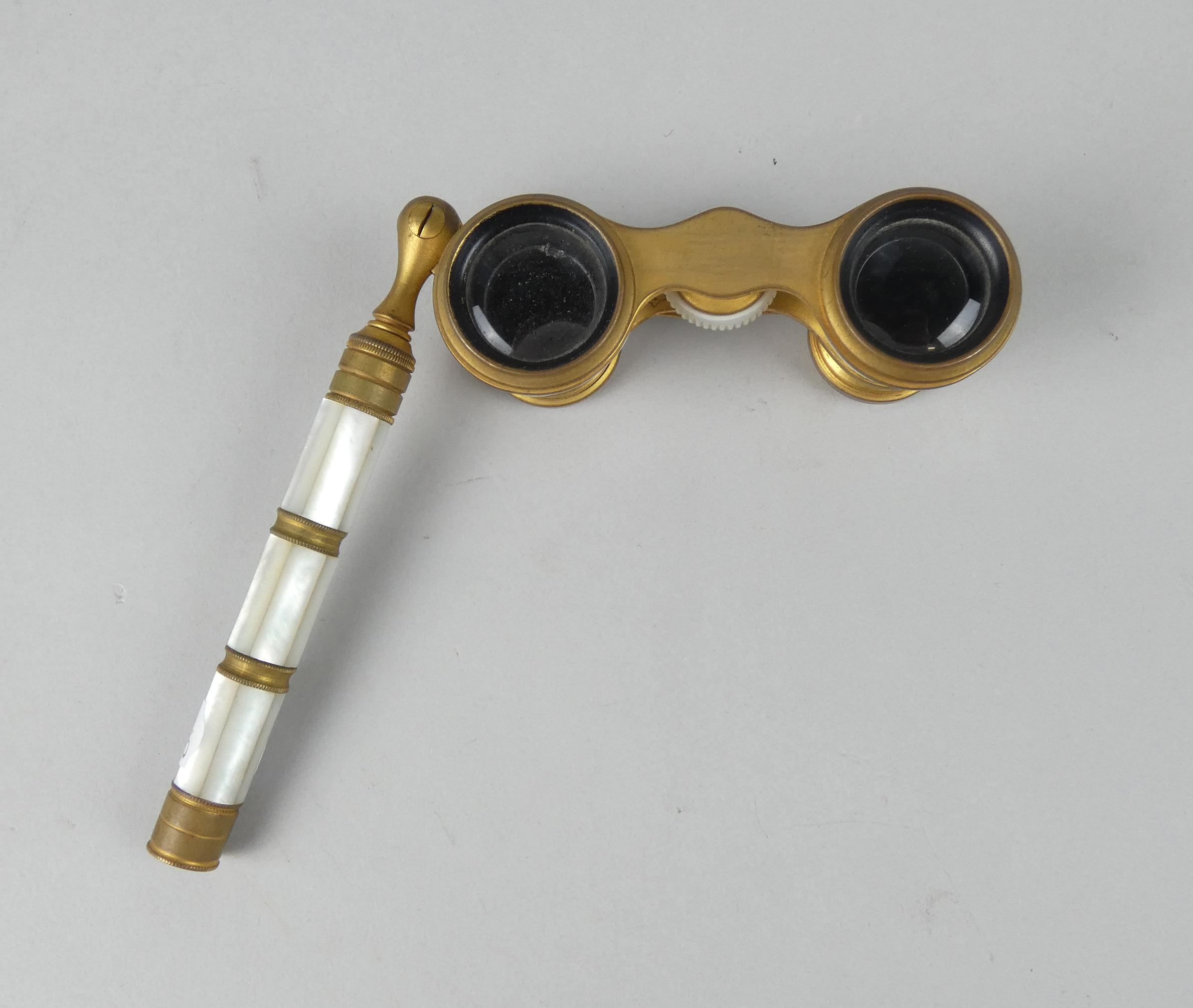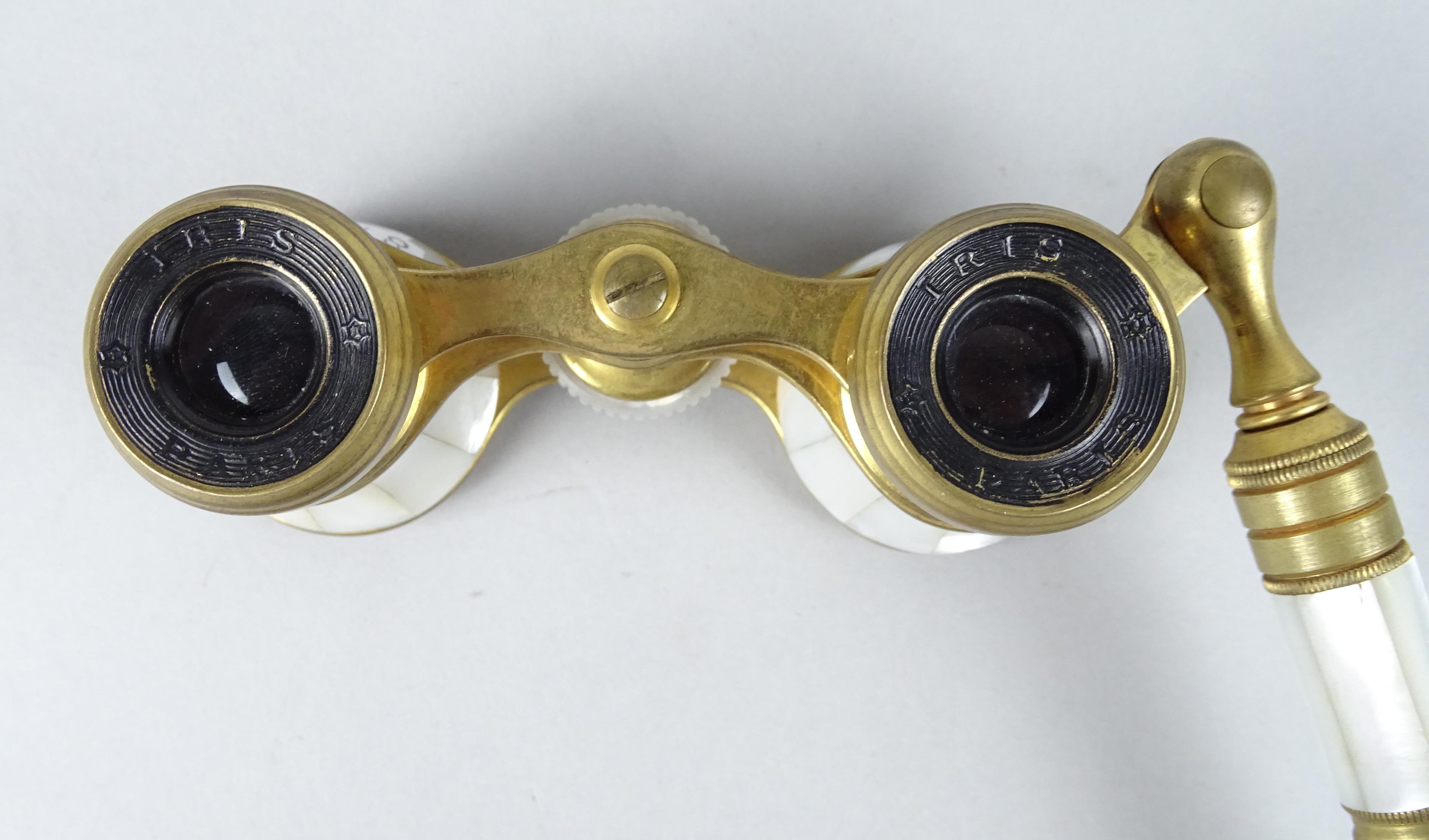 Objet: Paire de jumelles de théâtre -Iris Paris- en laiton doré et nacre manche