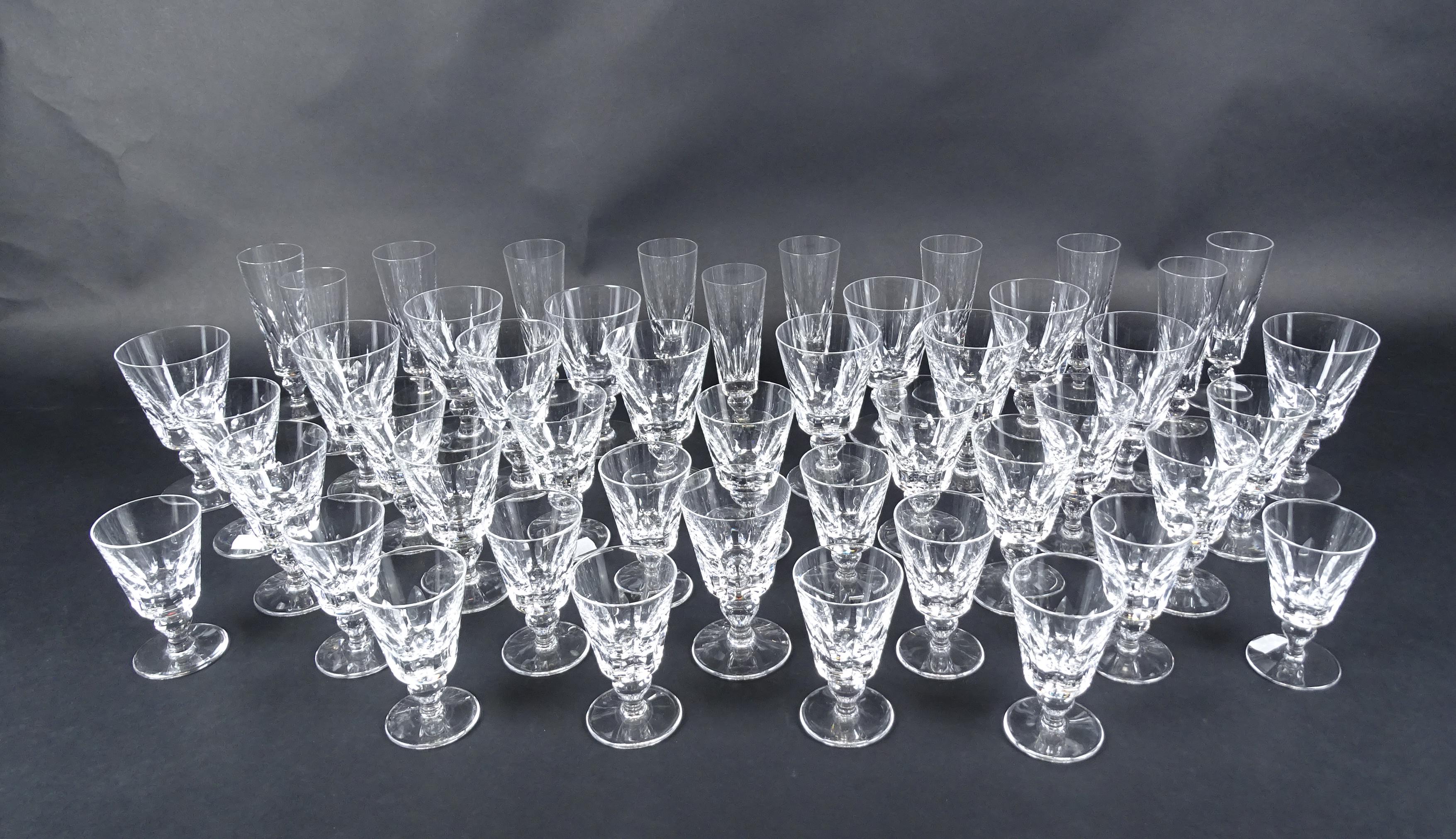 Verrerie: Service de verres en cristal taillé Saint Louis modèle JERSEY (47): 12 v à eau, 12 v à vin rouge, 12 v à vin blanc, 11 flûtes à champagne (47pcs)