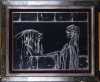 Tableau dessin papier gratté -Femme et cheval- 81 signé DE GRAEF David (20eS) 50x67cm cadre patiné (acc) s/v
