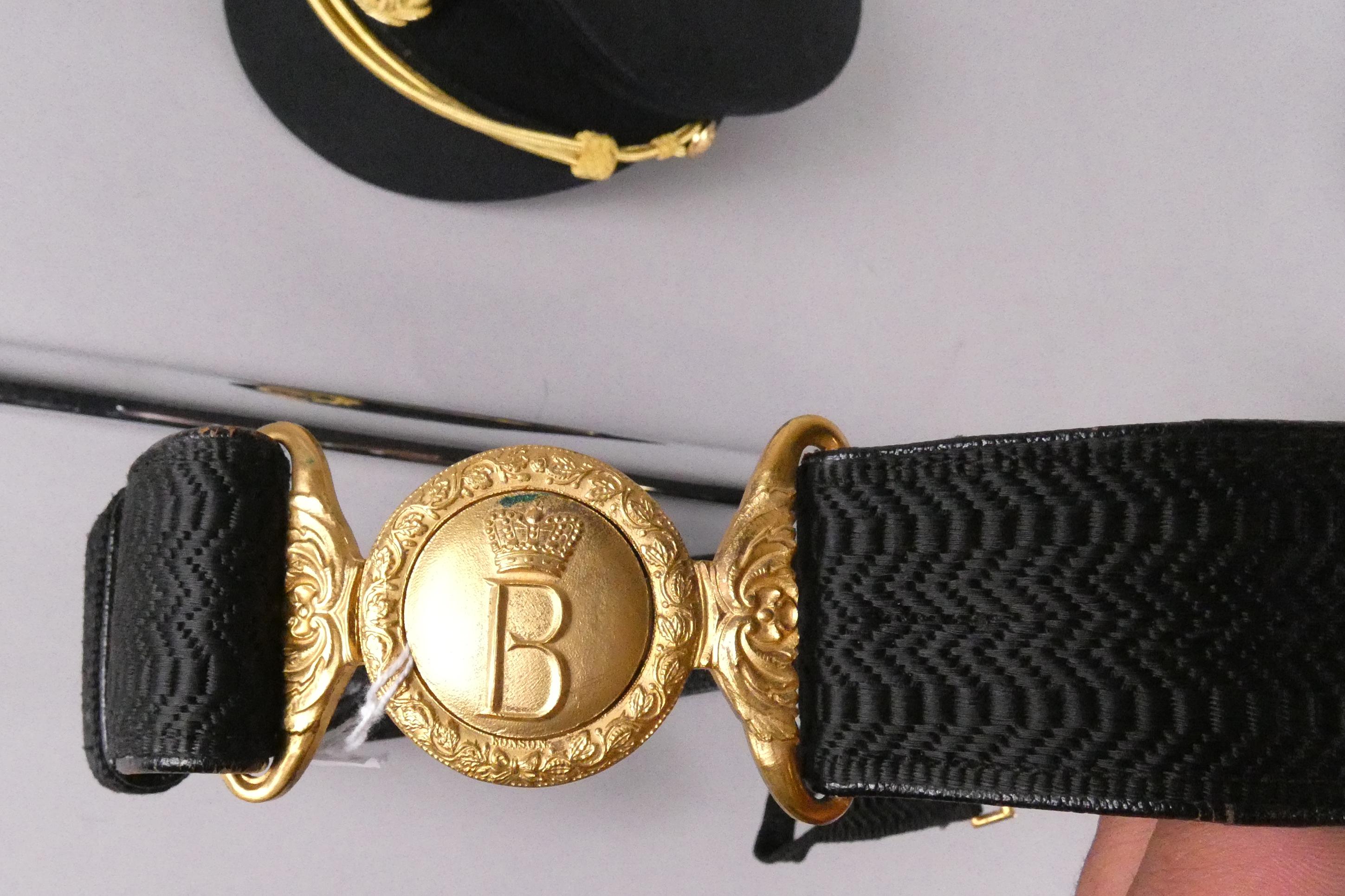 Militaria: sabre belge d'officier mod 1889 aux chiffres de Baudouin 1er avec son ceinturon + casquette officier Pompier