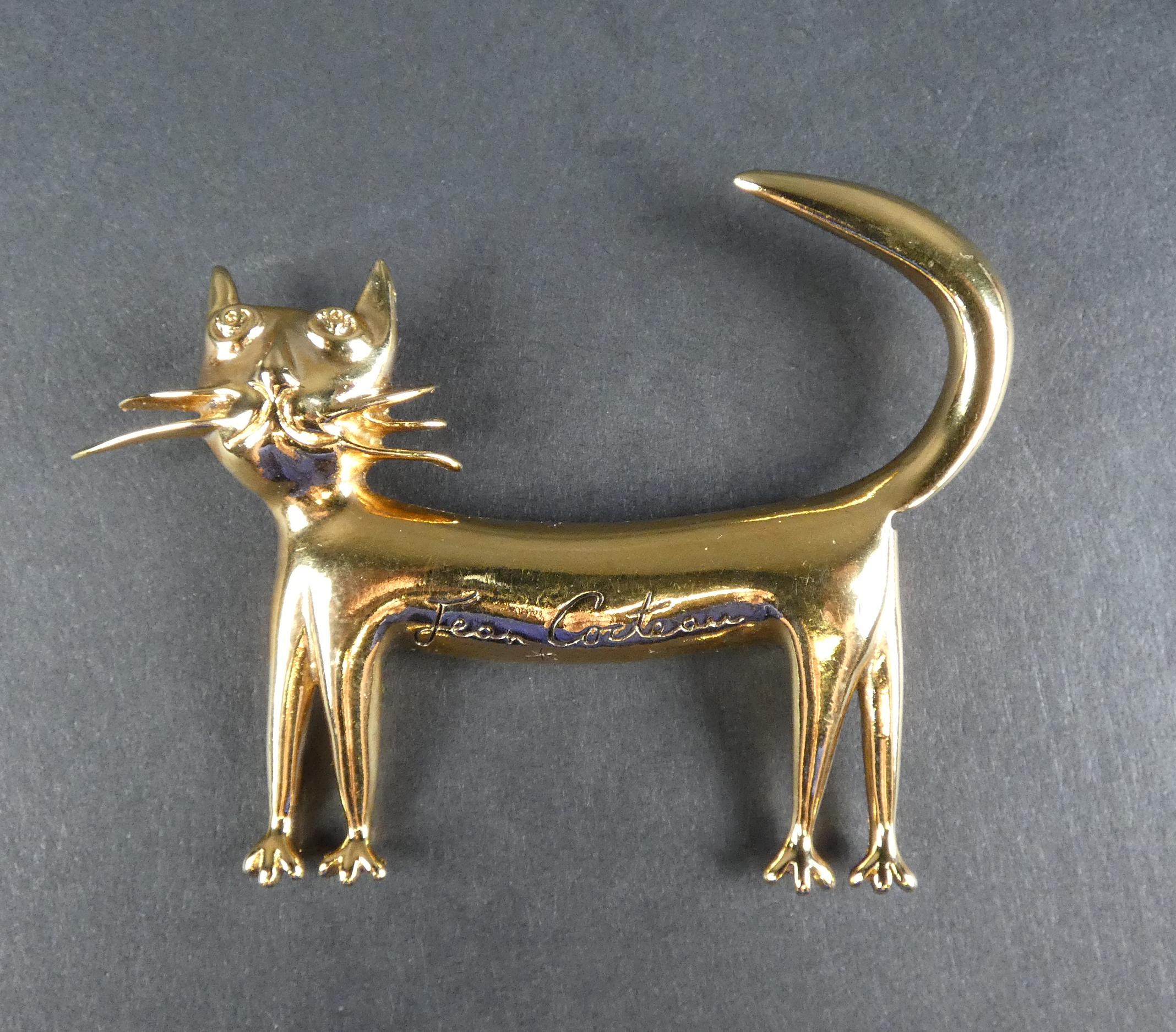 Bijou : Broche - Chat - Comité Jean Cocteau atelier Madeline édition Flammarion 1997 en métal doré