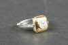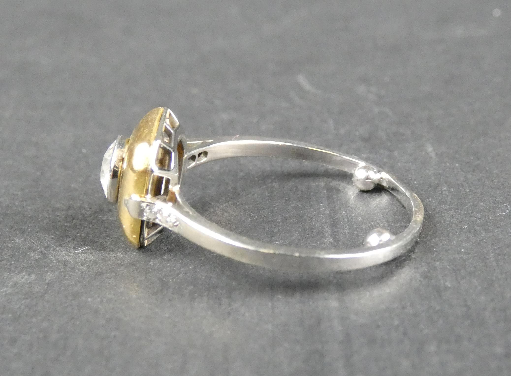 Bijou : Bague en or jaune et blanc 18K sertie d'un diamant principal et de diamants