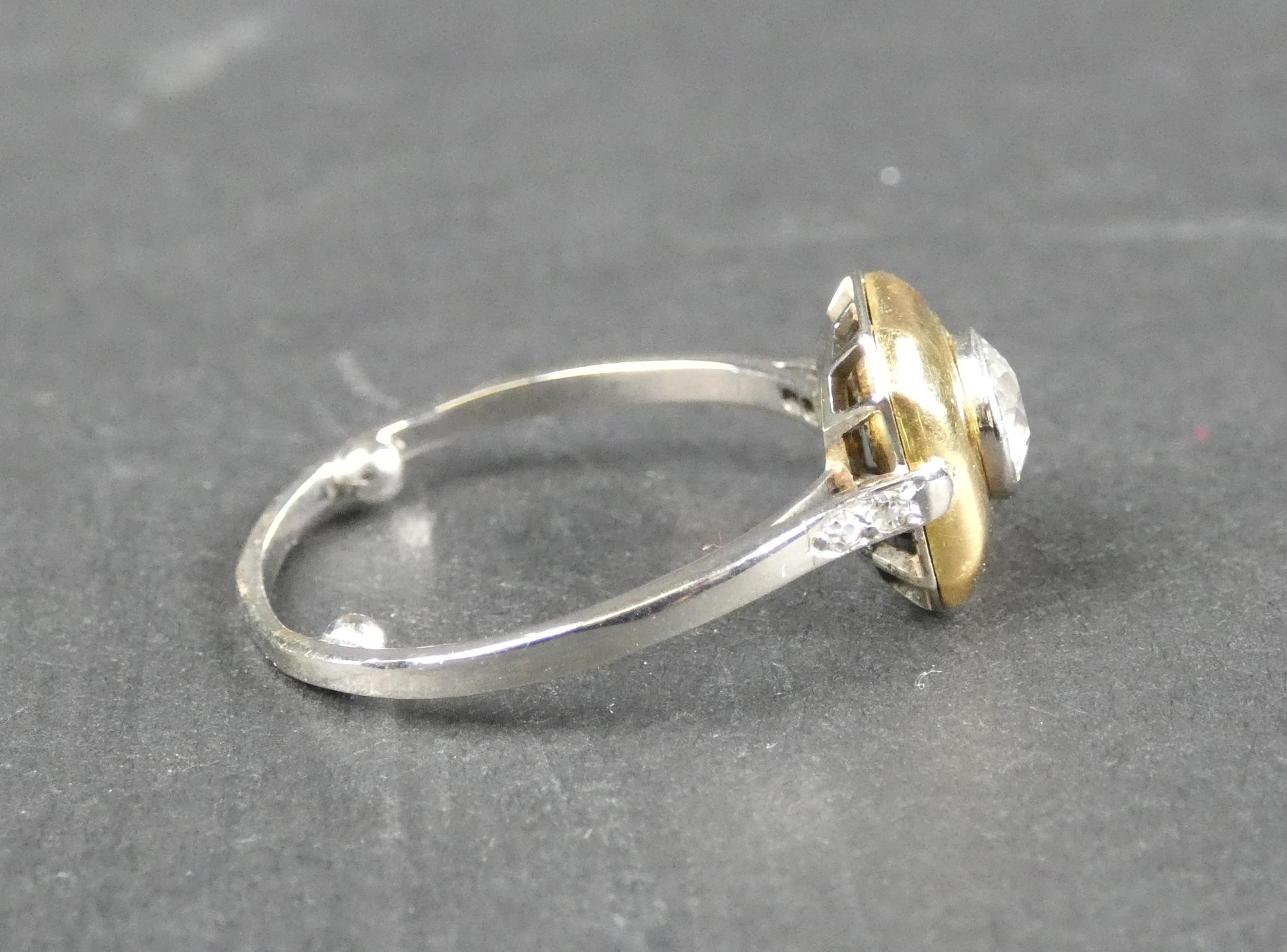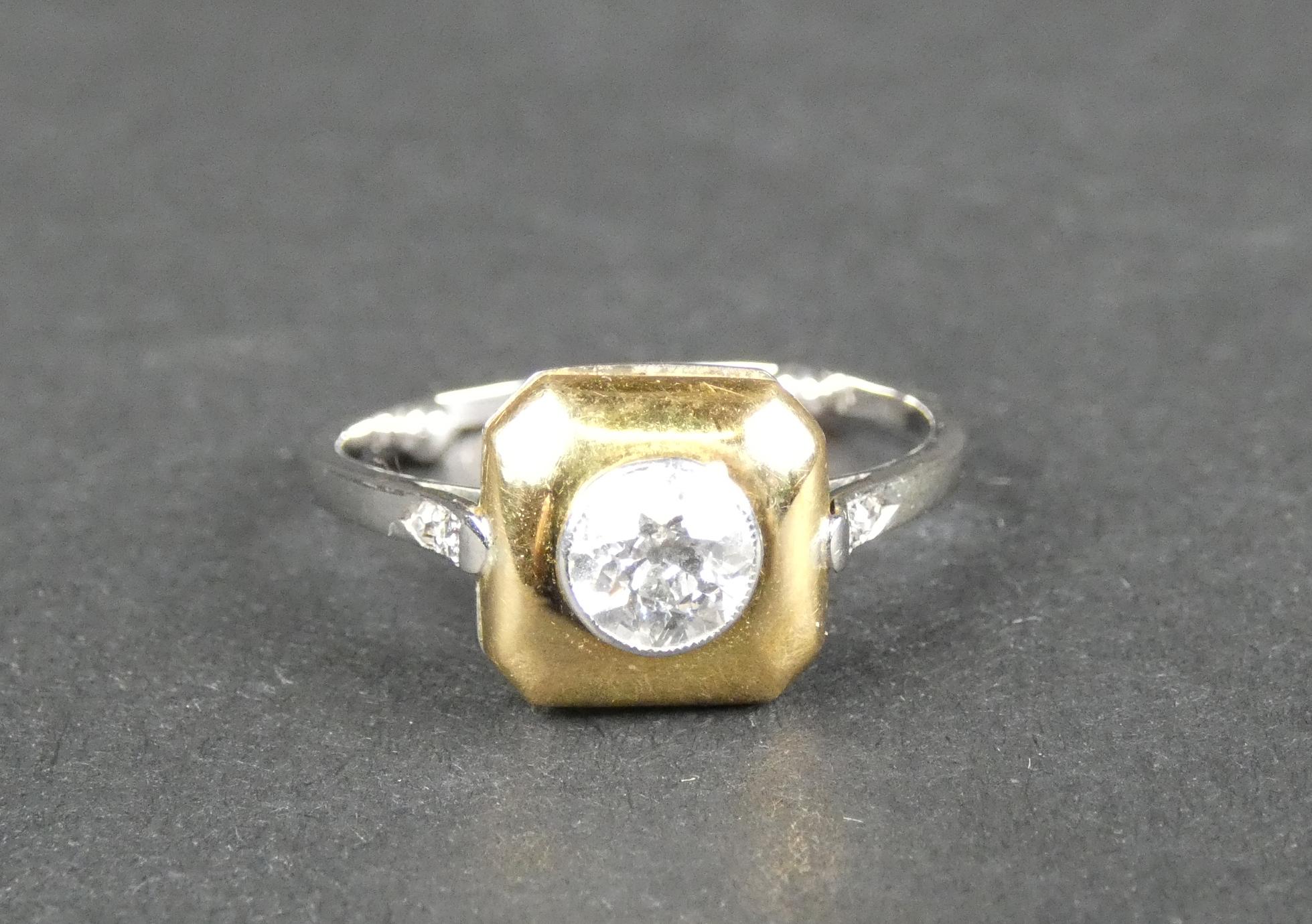 Bijou: Bague en or jaune et blanc 18K sertie d'un diamant principal d'env. 0,50cts et de 4 diamants d'env. 0,01cts P: 4g TDD: 54