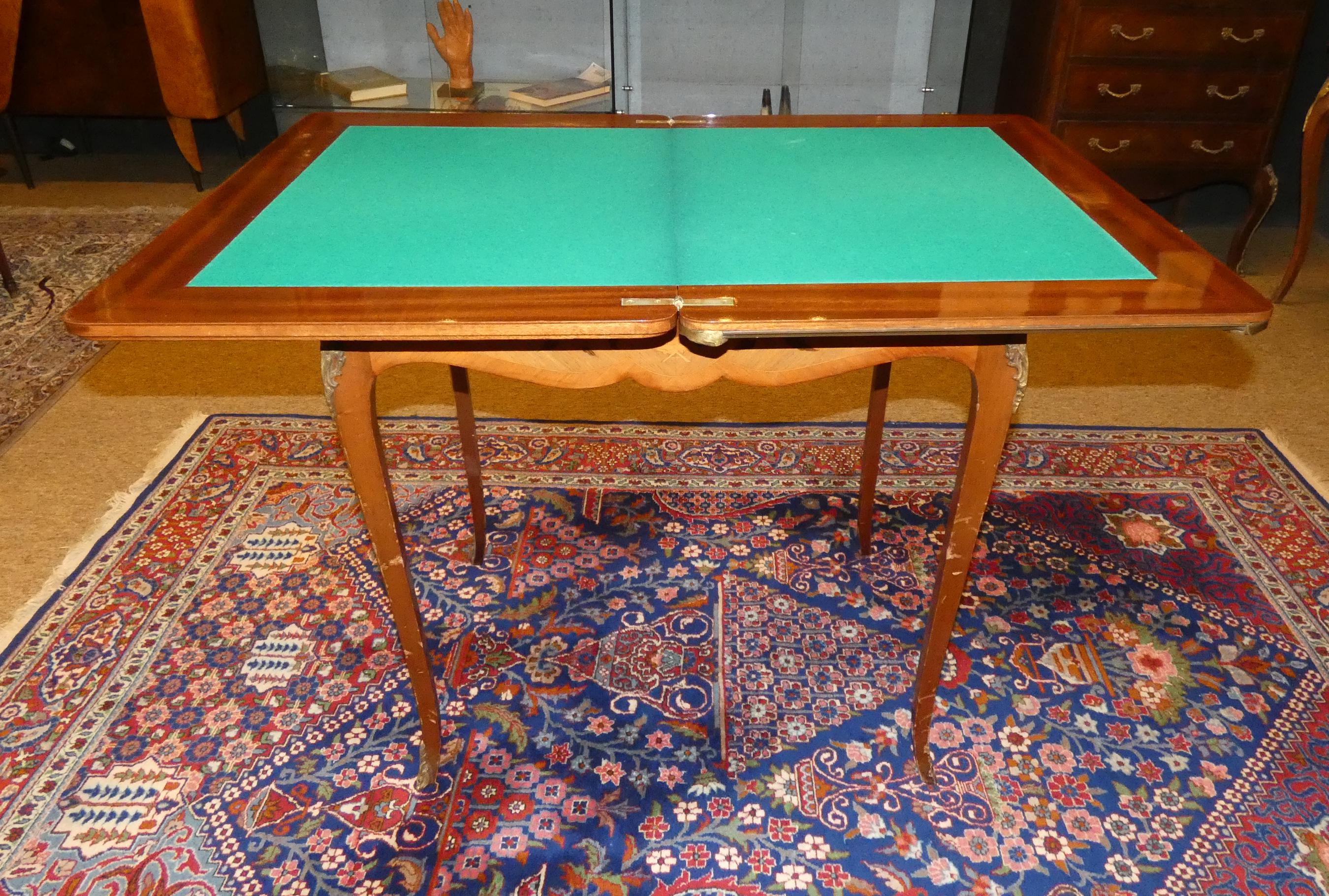 Meuble: Table à jeux de style (usure d'usage) en marqueterie de bois de rose mil
