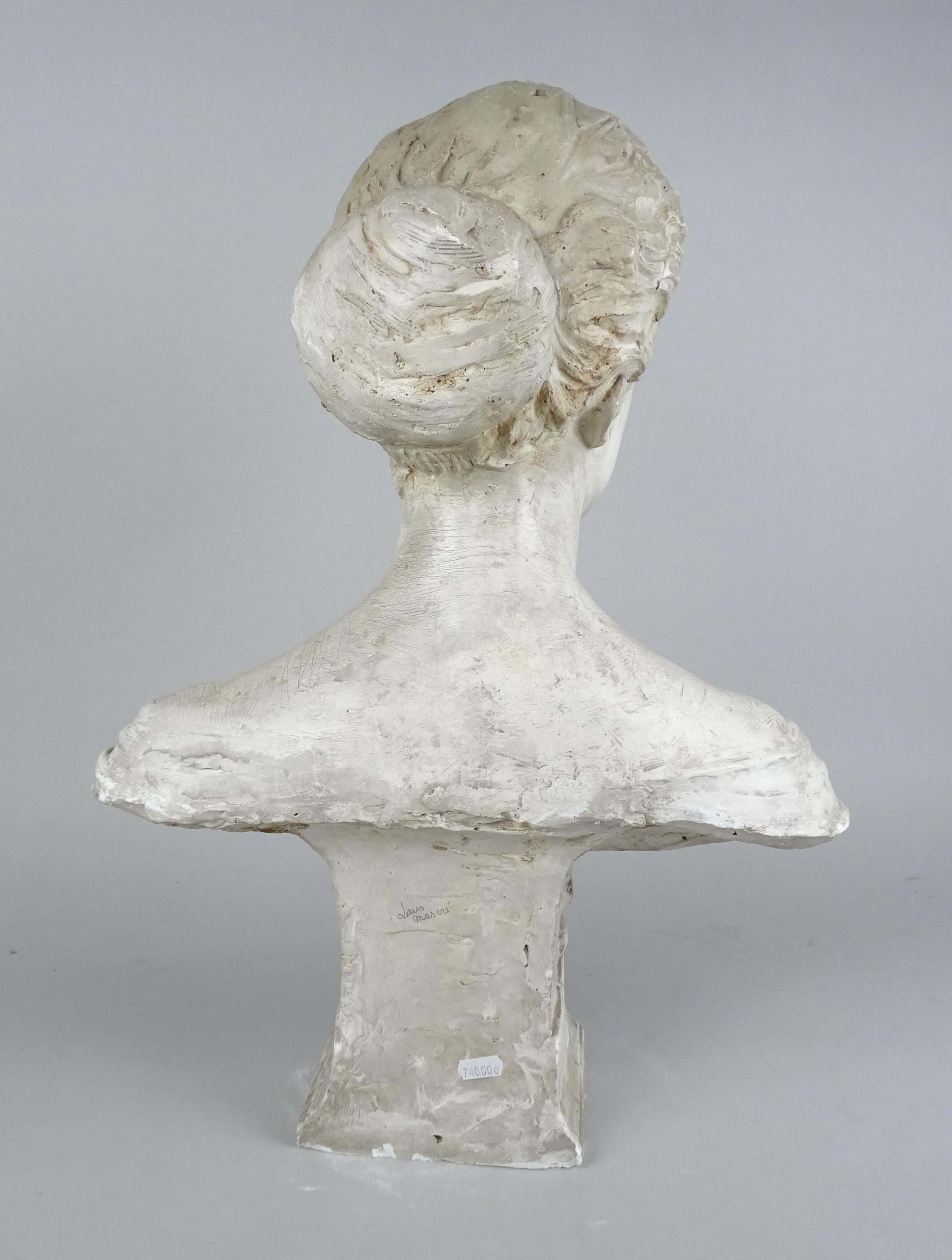 Sculpture: Buste de femme en plâtre (usure, ecl) daté 1916 signé MASCRE Louis