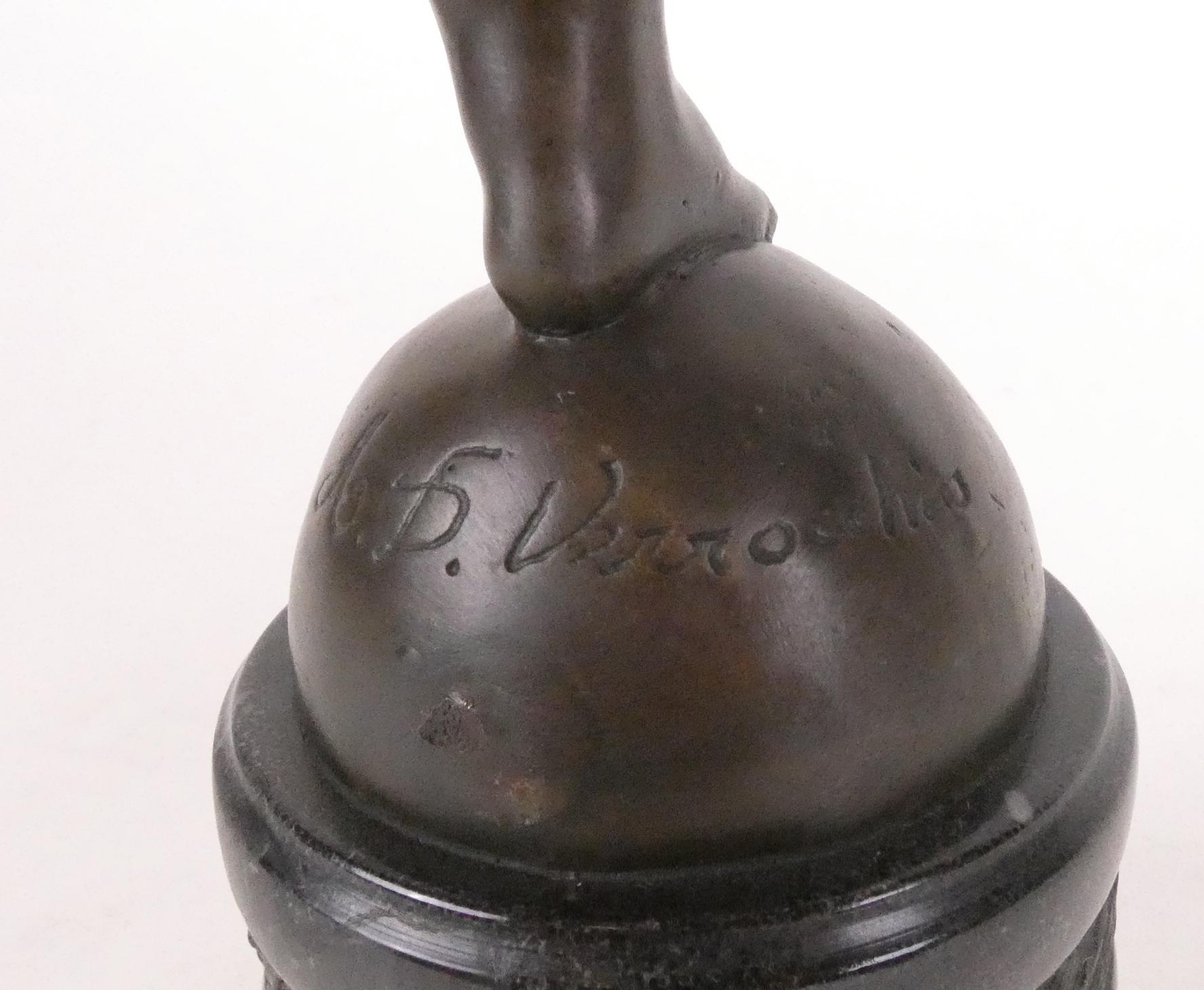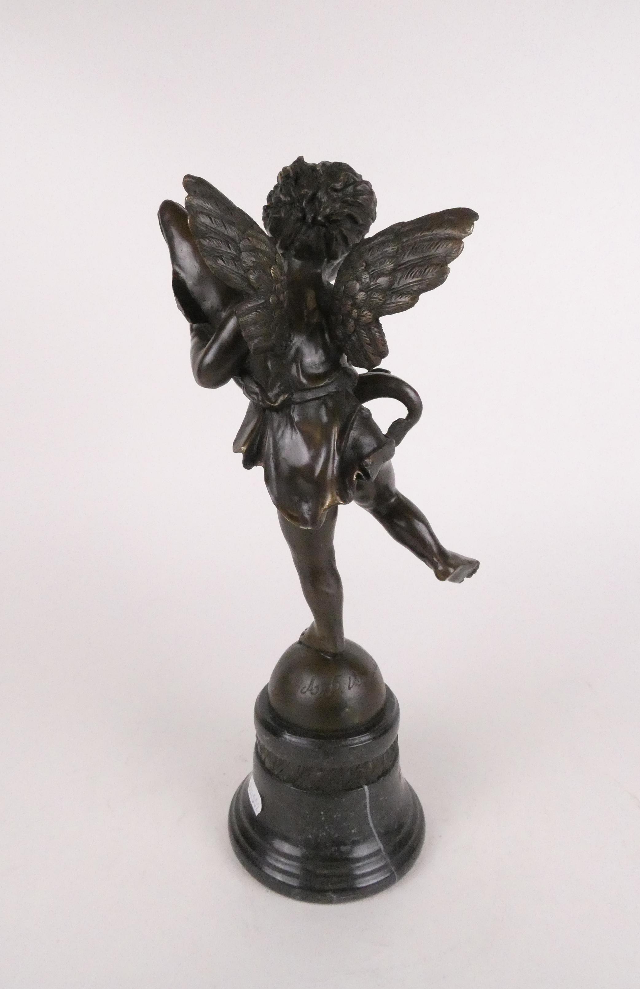 Sculpture: Bronze à patine brune figurant un Amour/ chérubin au dauphin signé d'après *DEL VERROCHIO A.* (Andre) (1435, 1488) H30cm sur socle en marbre