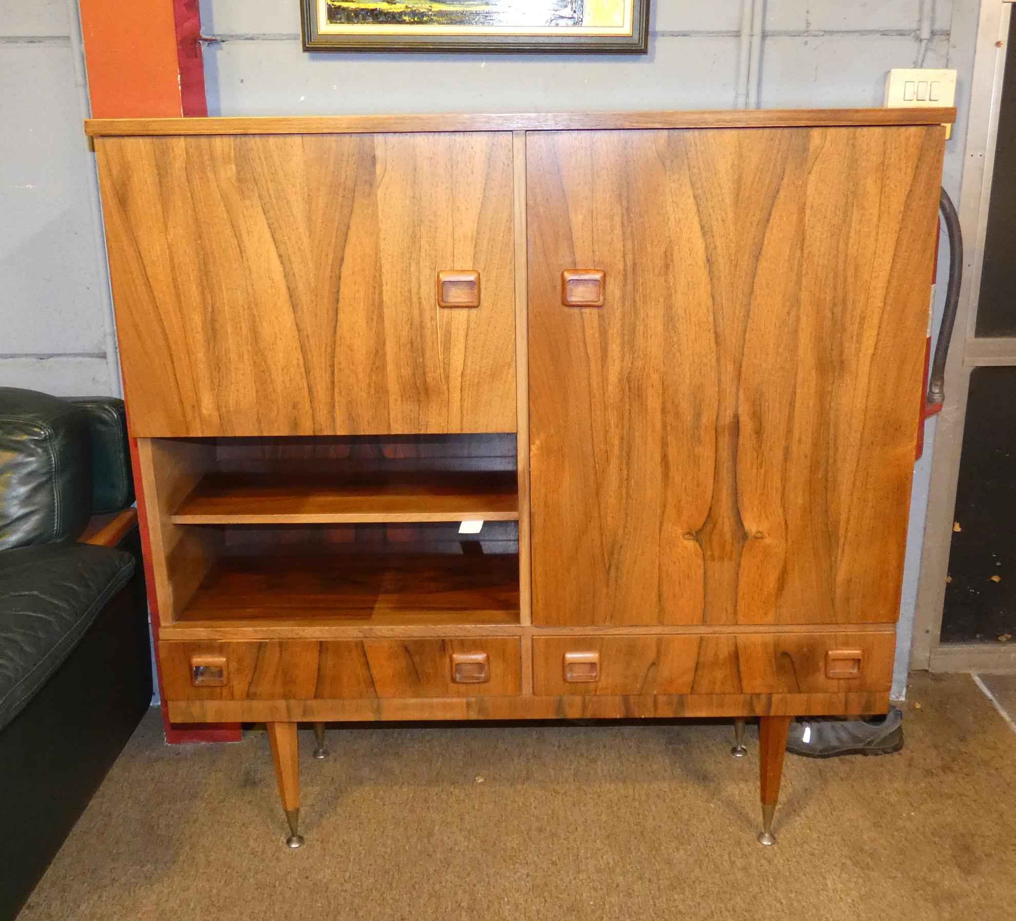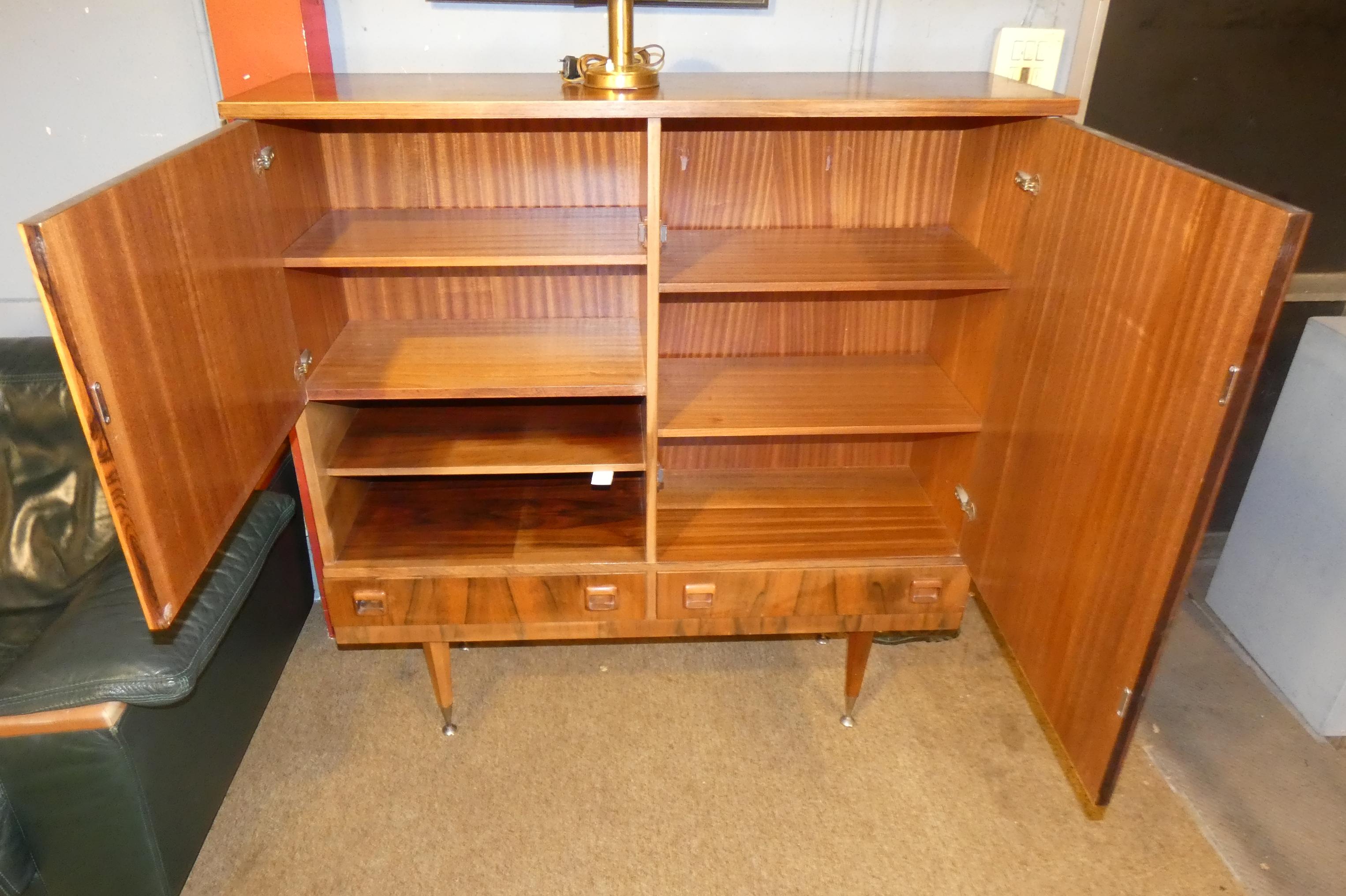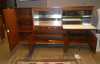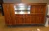 Meuble: Salle à manger vintage en palissandre sur pieds métal chromé circa 1960 : Bahut vitrine, petit meuble , table allongeable