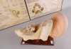 Objet: Ecorché d'oreille en coupe partielle (pt ecl) 24x36x15cm sur socle en bois + 2 planches pédagogiques d'anatomie de l'oreille (piqué, usures) (3pcs)