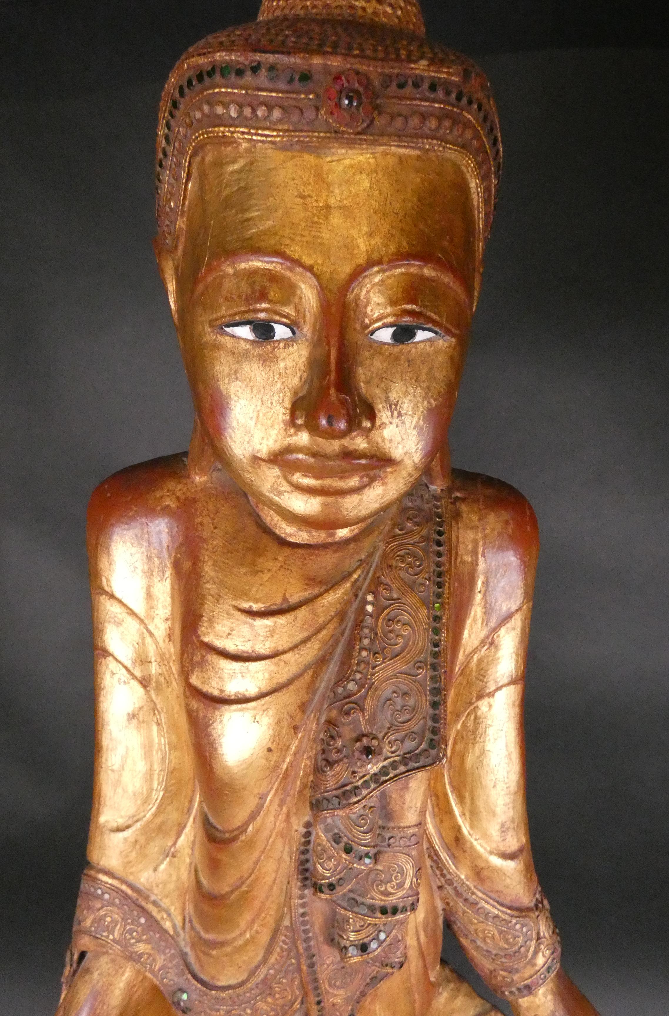 Asiatique: Sculpture Bouddha en bois doré BIRMANIE (fissure importante pans de r