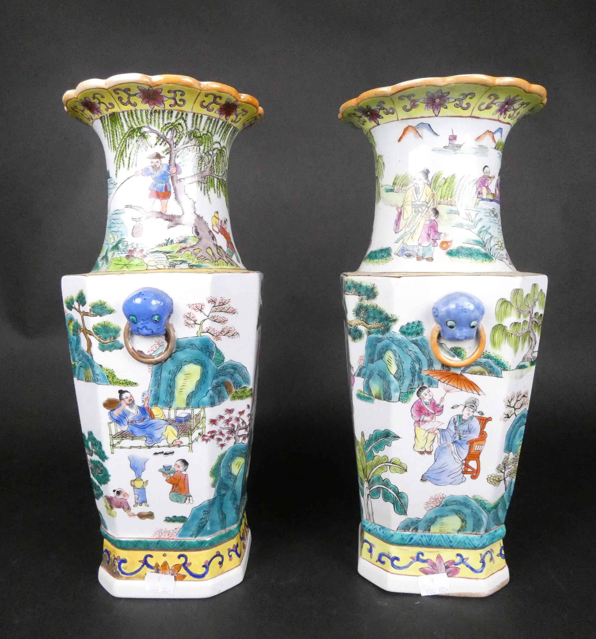 Asiatique: Paire de vases à anses de chien fô en porcelaine de Chine H:42,5cm