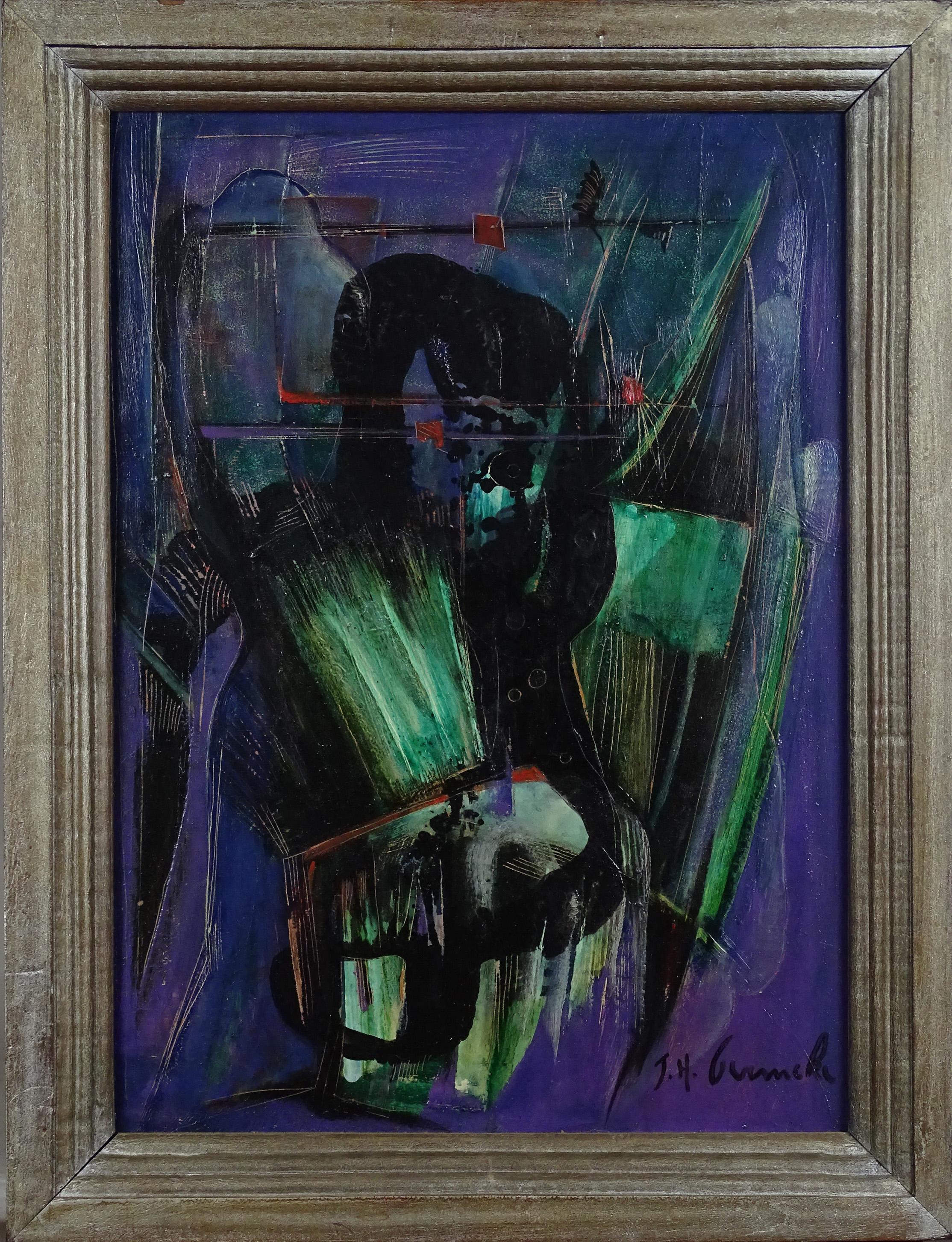 Tableau HSP -Composition- signé *PERMEKE J.* (John Henri) (Folkestone Grande Bretagne 1914, 1993) 60x43cm cadre argenté
