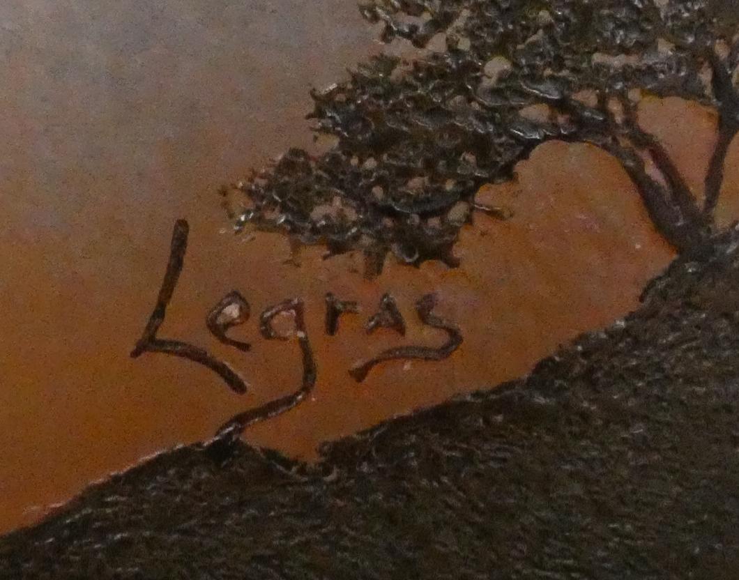 Verrerie : 2 vases quadrangulaires signé LEGRAS décor de paysage gravé à l'acide