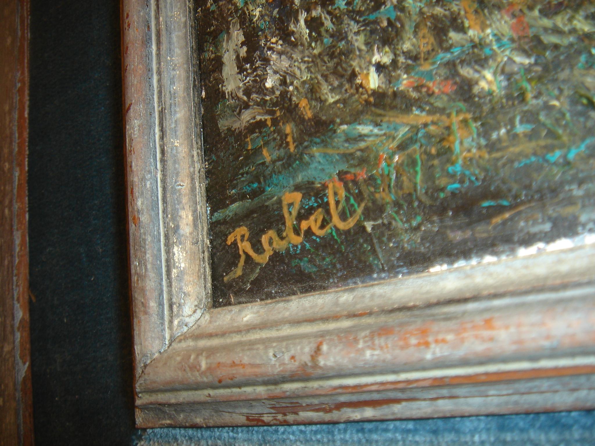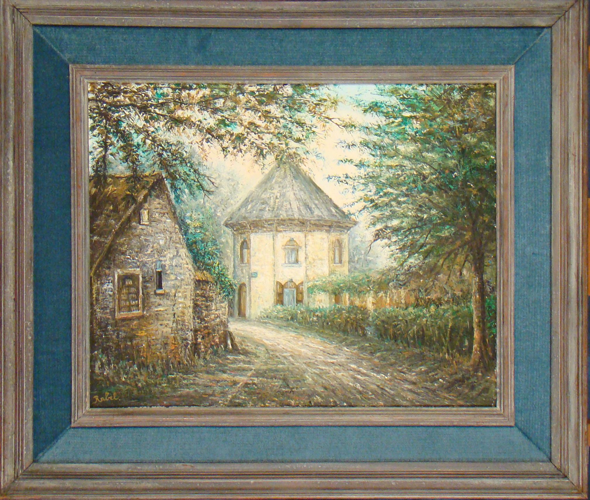 Tableau HST -Tour du lait Buré- daté 1976 signé RABEL (école belge 20eS) 40x49cm cadre bois et tissu