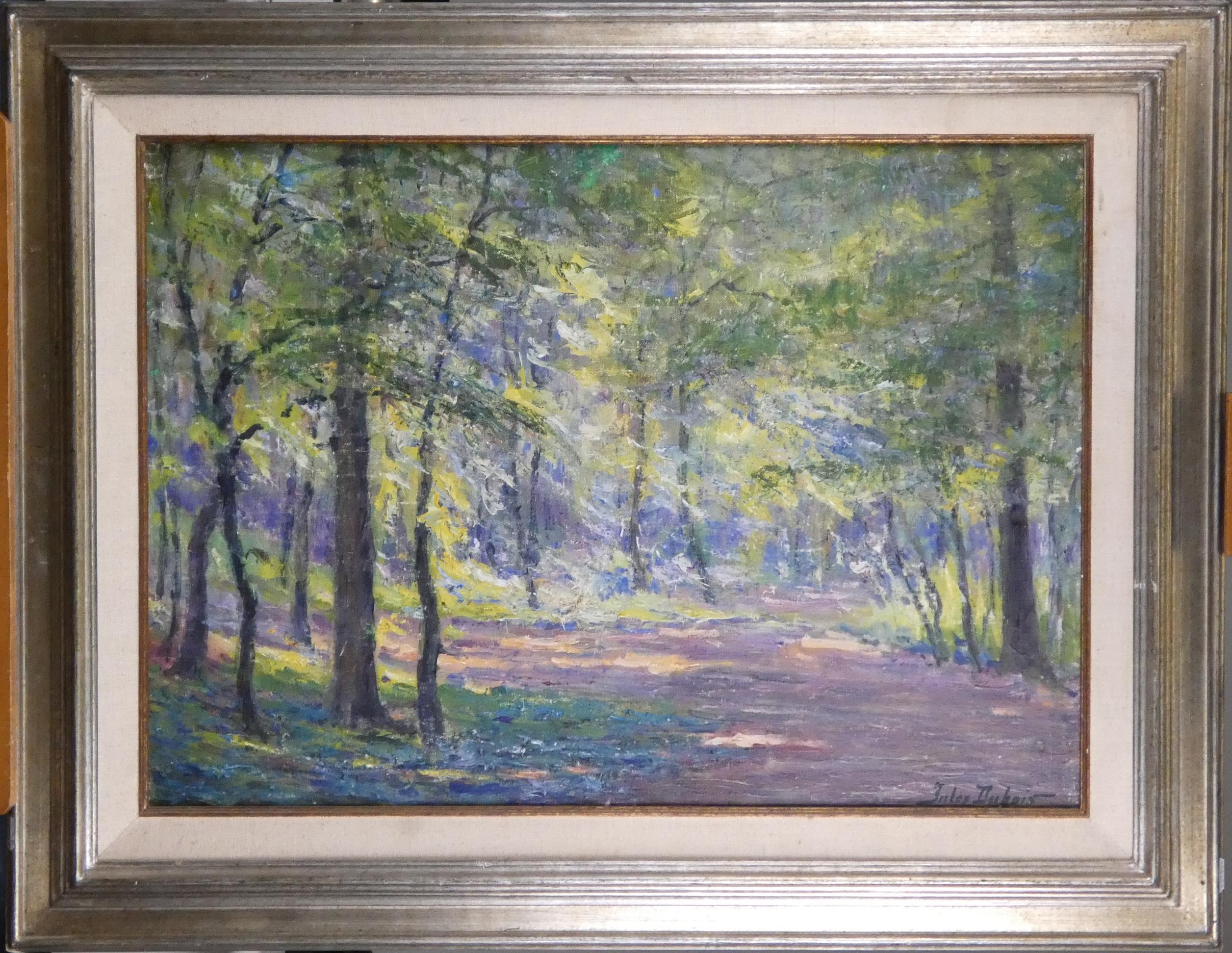 Tableau HST -Vue de forêt- signé *DUBOIS J.* (Jules) (1888, 1958) 50x70cm cadre argenté