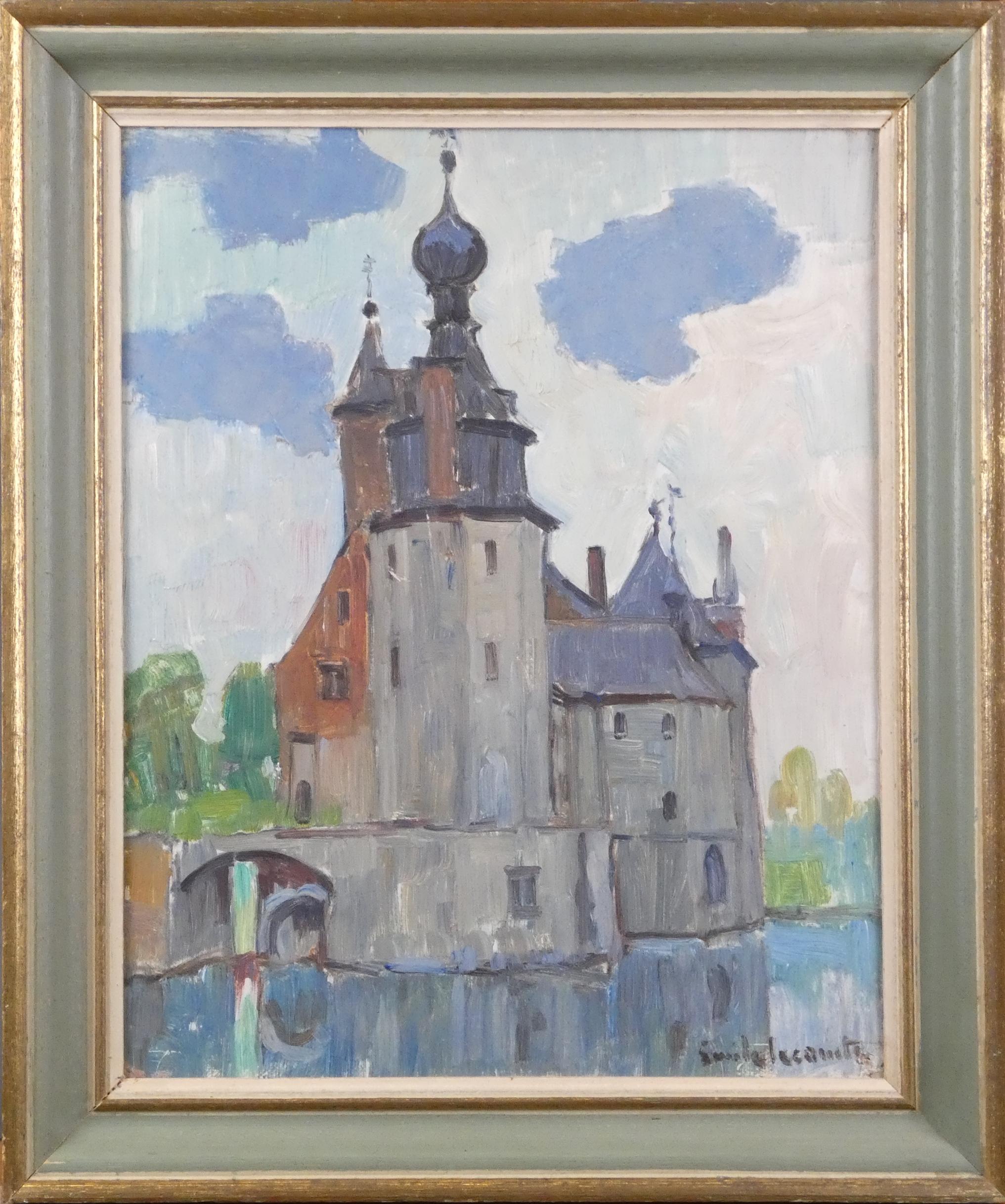 Tableau HSP -Château d'Havré- signé *LECOMTE E.* (Emile) (1866, 1938) 40x33cm cadre en partie doré