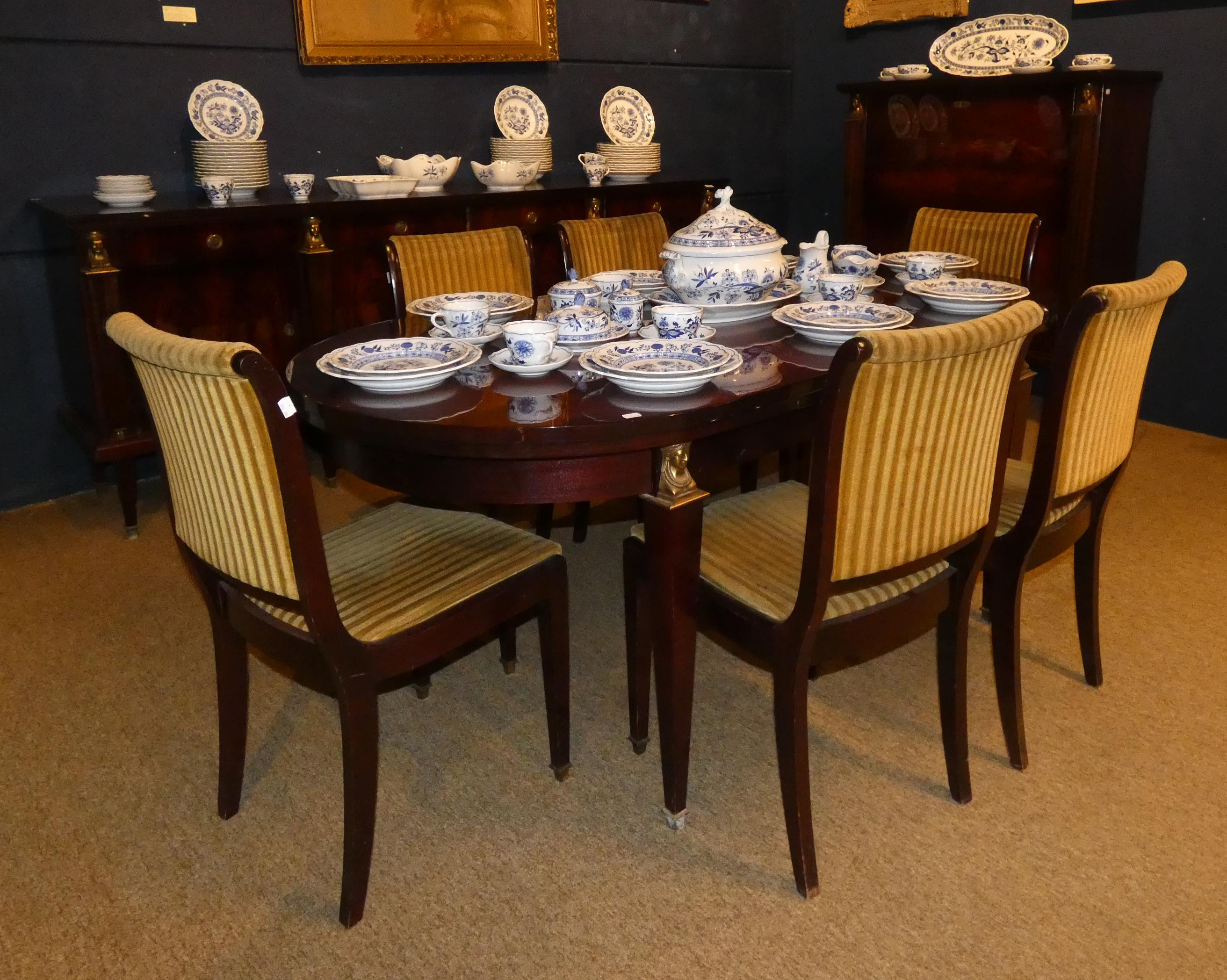 Meuble: Salle à manger de style Empire en placage d'acajou (ecl, rayures, chocs)