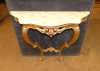 Meuble: Console en bois sculpté et doré (usure d'usage) de style Louis XV dessus marbre blanc (pt ecl, rayures) 90x97x30cm