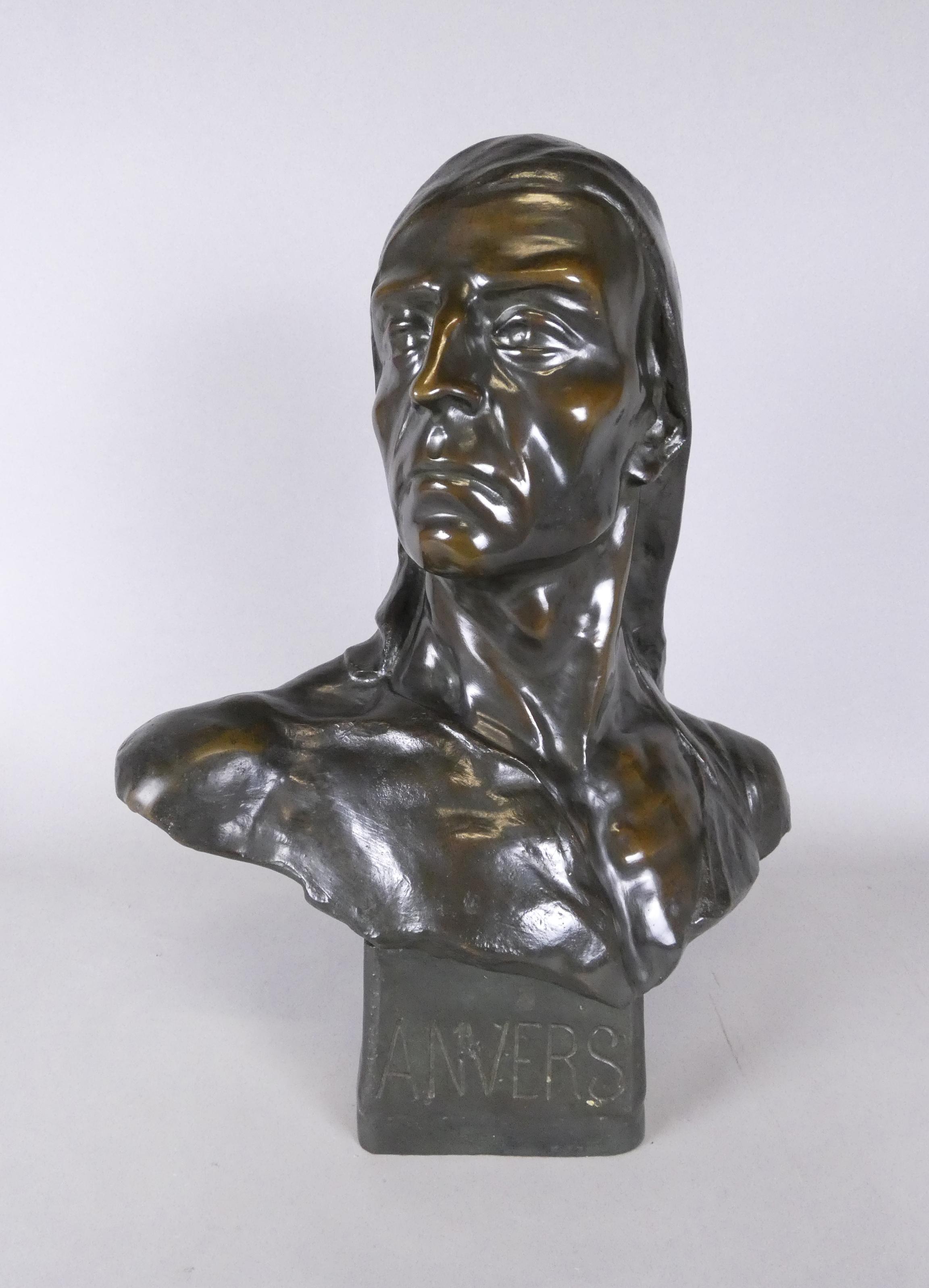 Sculpture: Buste en bronze à patine brune -Docker d'Anvers- daprès *MEUNIER C.* (Constantin) (1831, 1905) H:58cm