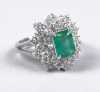Bijou: Bague en or blanc 18K sertie d'une émeraude d'env. 1,39cts entourée de diamants pour env. 1,05cts P: 9,1g TDD: 56