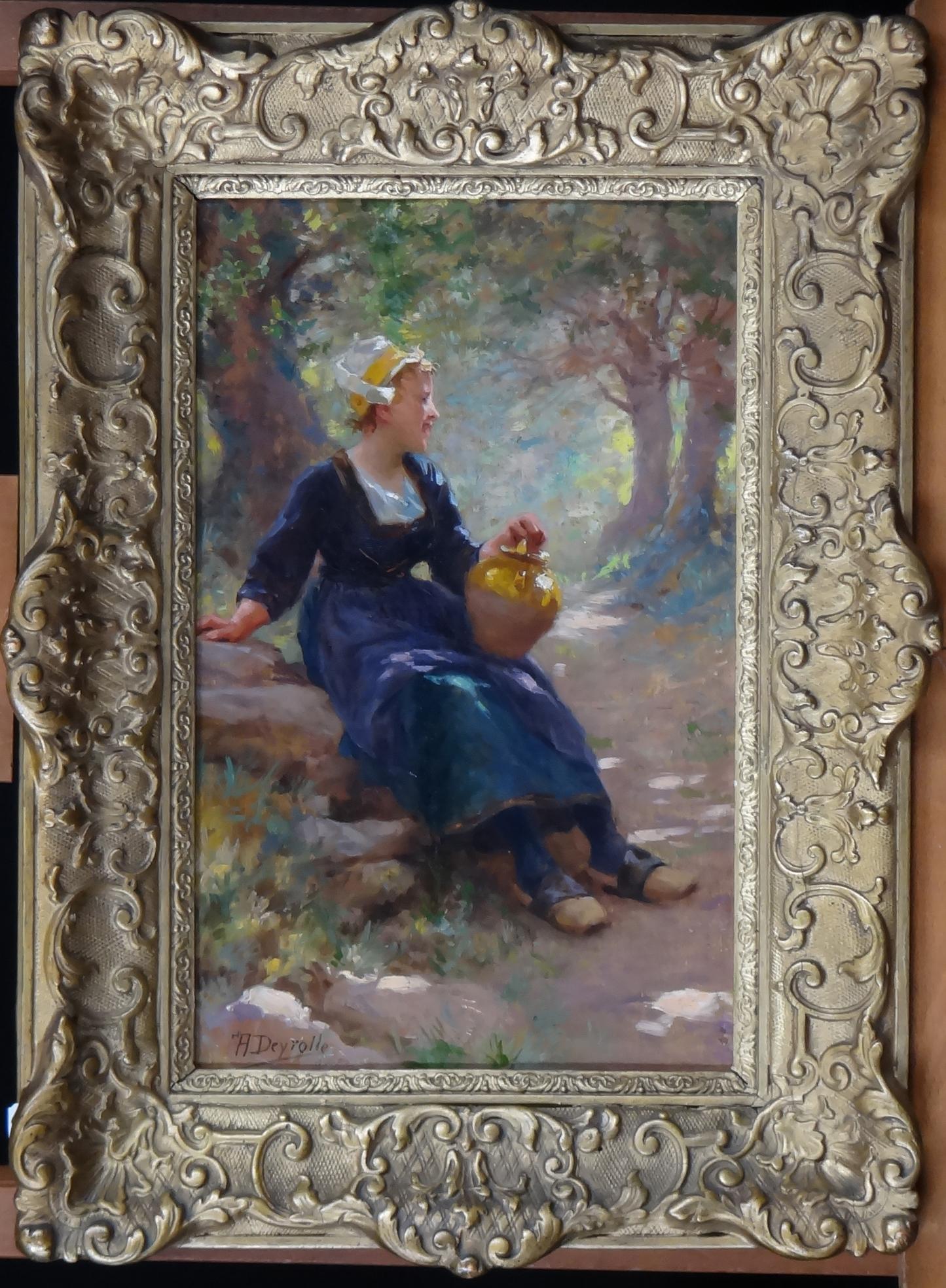 Tableau HSP -La Bretonne et son pot- daté 1908 signé DEYROLLE Théophile Louis