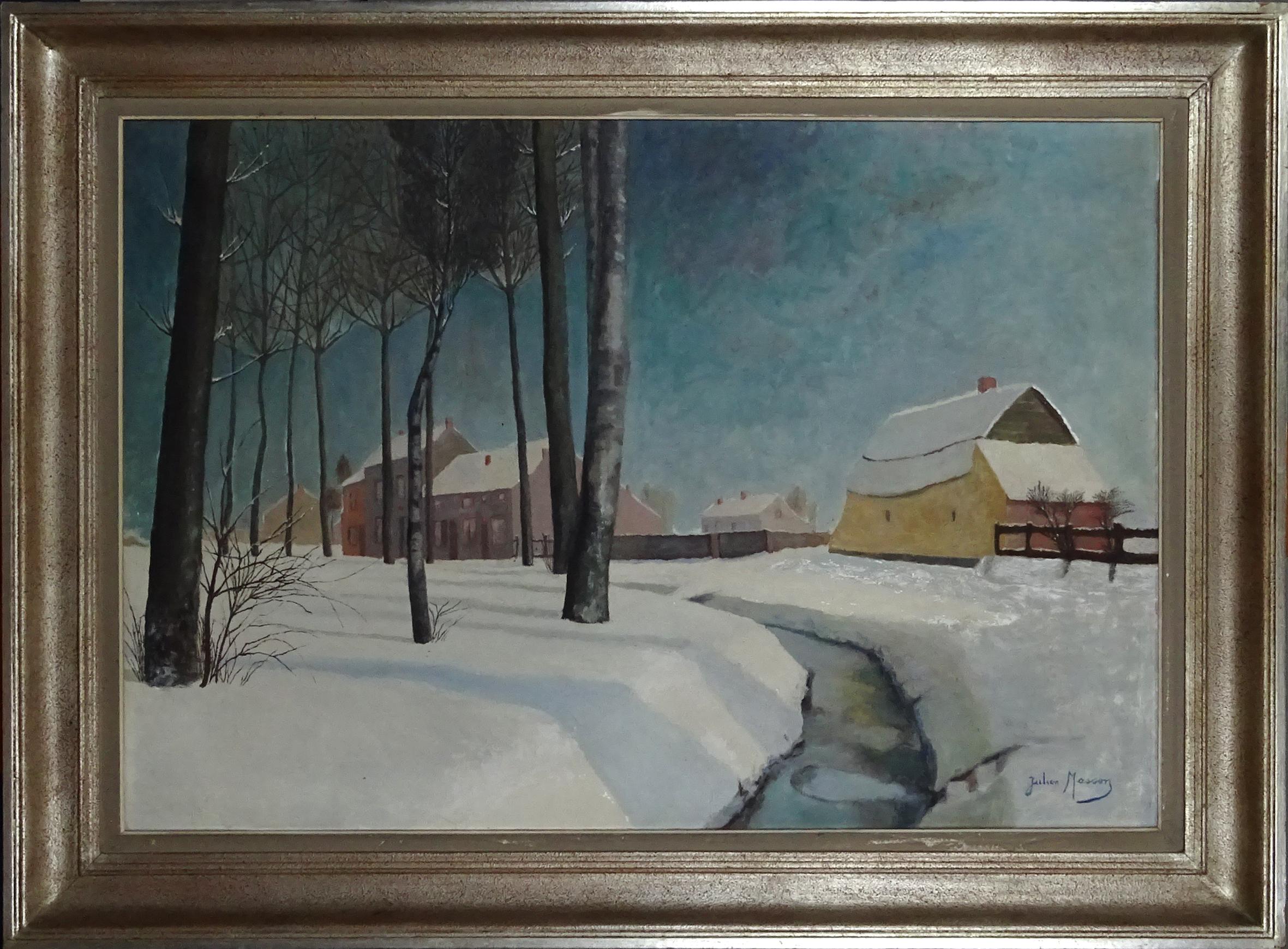 Tableau HST -Paysage hivernal- signé *MASSON J.* (Julien) (1891, 1957) 65x94cm cadre argenté