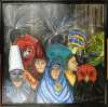 Tableau HSP -Carnaval- signé *DEGRACE F.* (Fabienne) (Mons 1961,) 130x130cm cadre bois noir