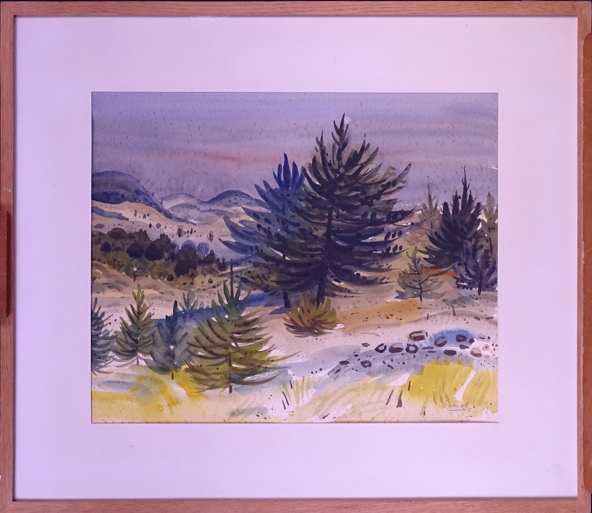 Tableau: Aquarelle sur papier -Paysage- signé *CAMUS G.* (Gustave) (1914-1984) 37x45cm cadre chêne s/v