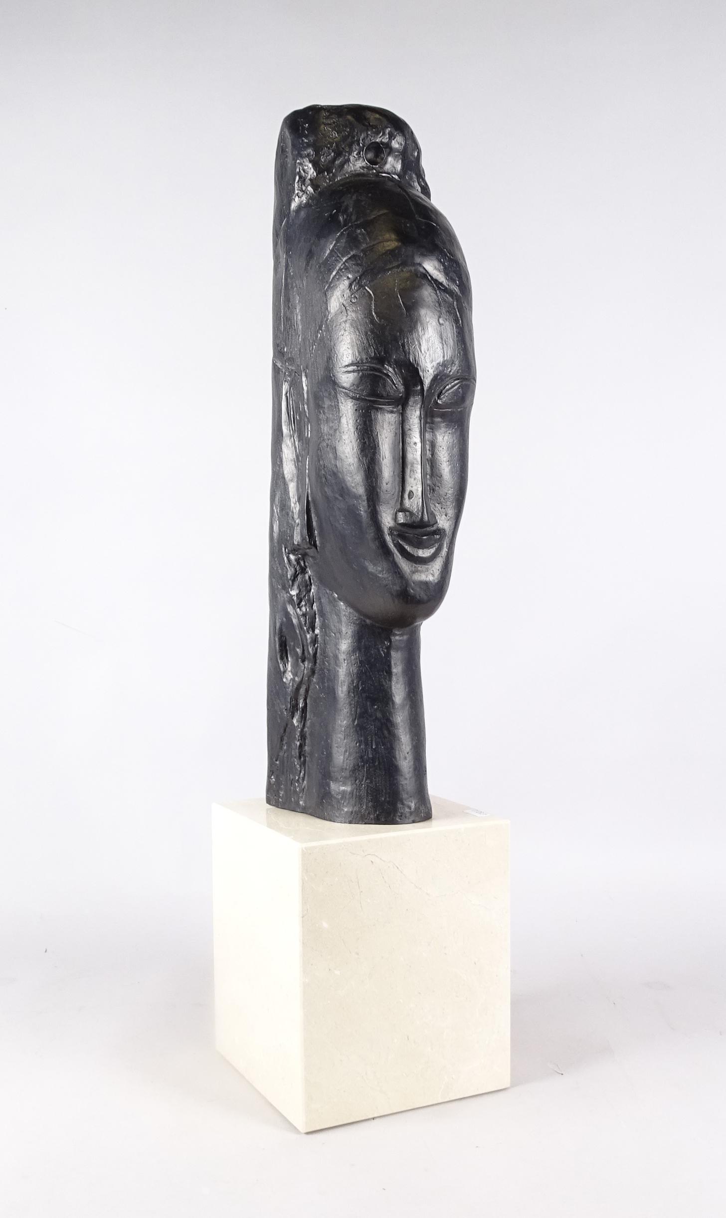 Sculpture: Bronze patiné -Tête de jeune femme- 8/48 d'après *MODIGLIANI A.* (Amedeo) (1884-1920) fondeur EBANO fonte posthume justif de tirage H:55cm socle marbre