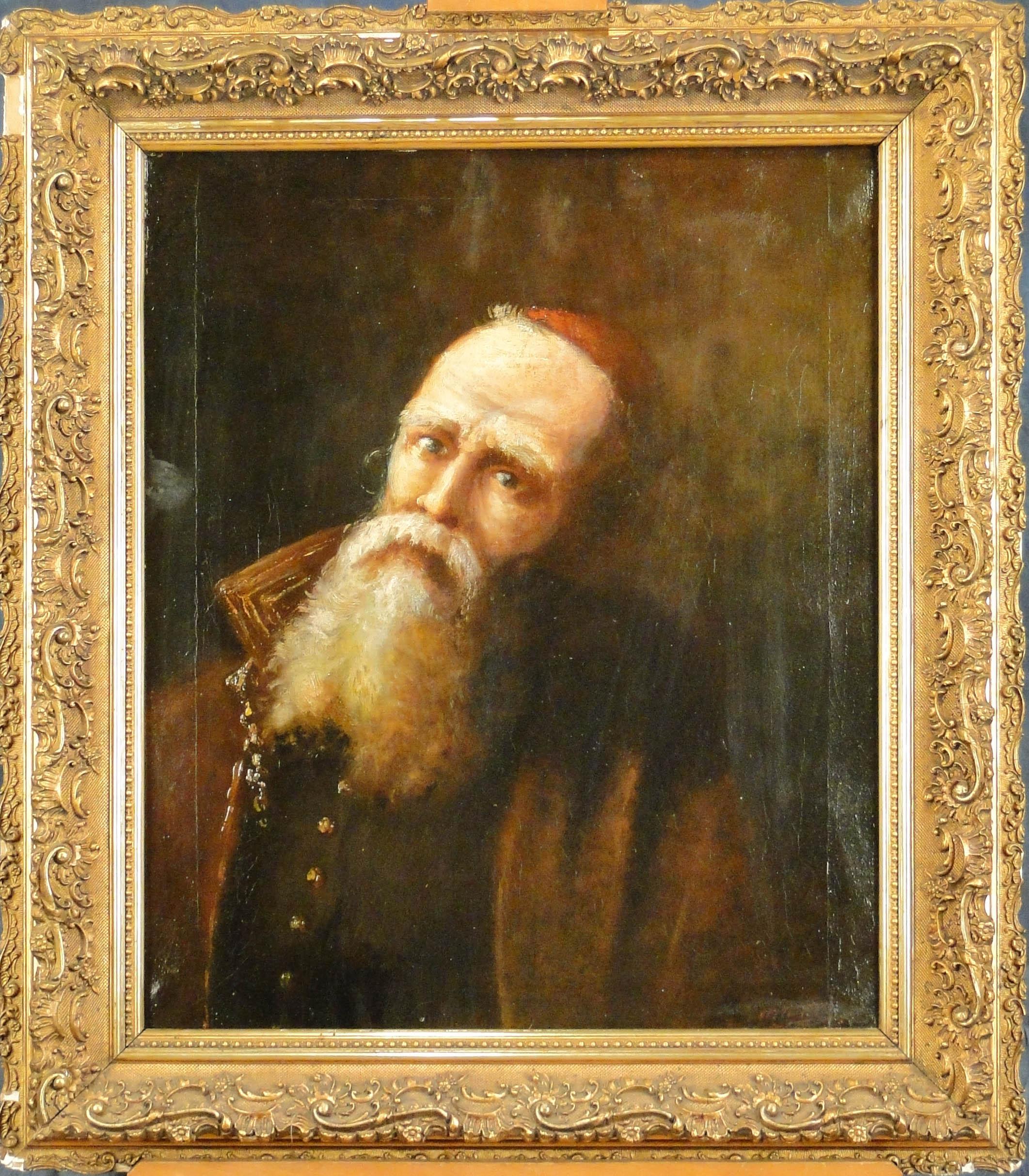 Tableau HST -Portrait de Cardinal- signé 1ere moitié 19eS 60x50cm cadre de style