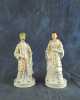Paire de figurines/ Carafes en porcelaine polychrome rehauts d'or inscription en