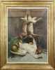 Tableau HST -nature morte canard et lapin- signé *BASTIEN A.* (Alfred) (1873, 1955) 90x70cm cadre doré