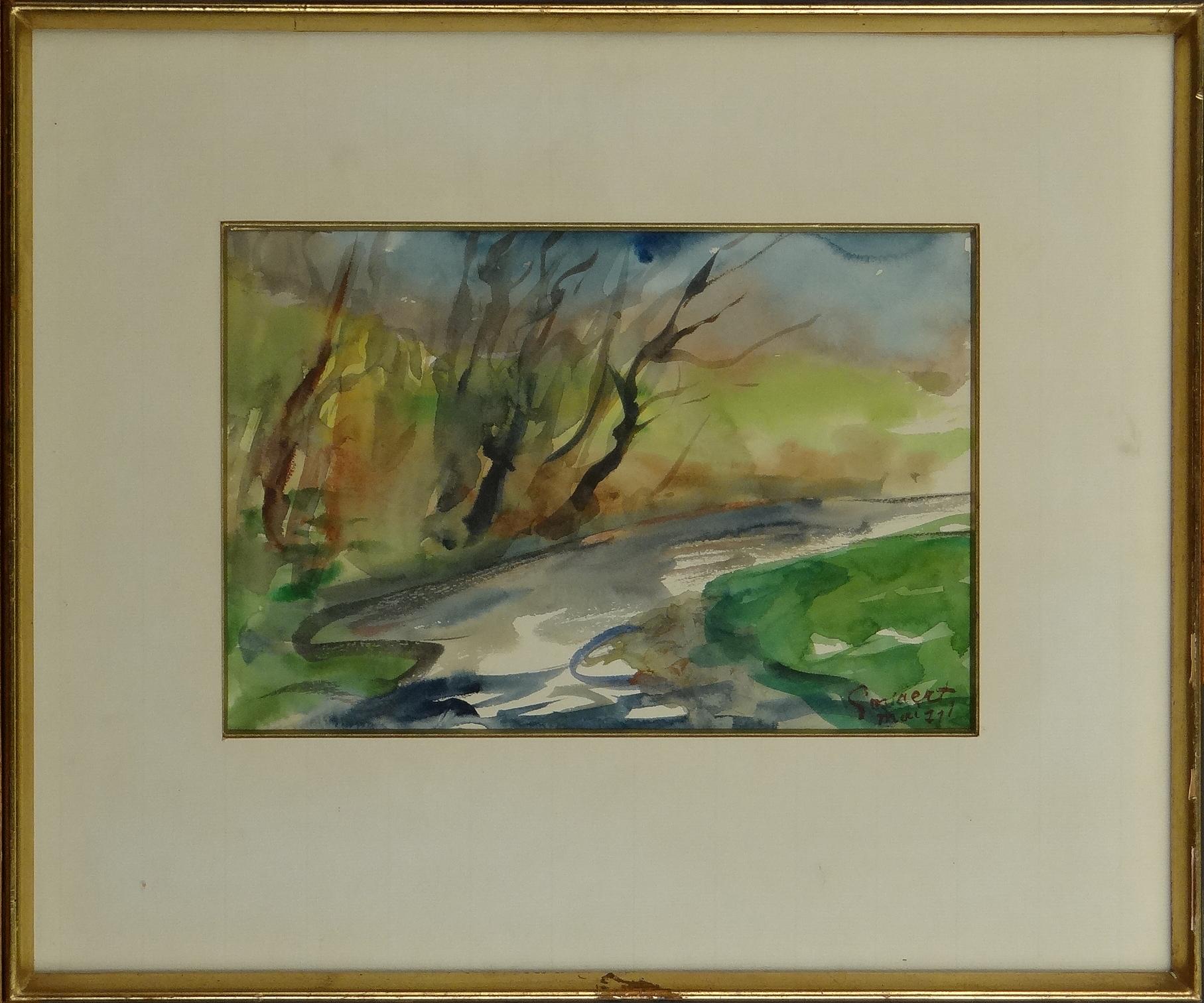 Aquarelle -Paysage la Masblette- mai 1971 signé *GOVAERTS J.* (Jean) (1897, 1985) 16x24cm Cadre doré s/v
