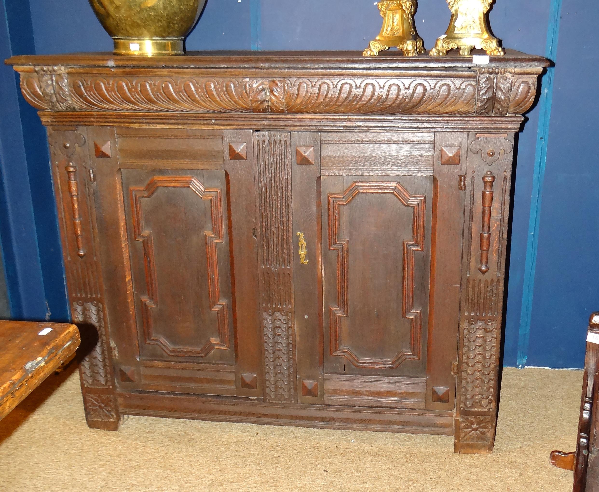 Meuble: Dresse en chene sculpté Renaissance flamande 17eS 120x145x63cm (pied arriere acc)