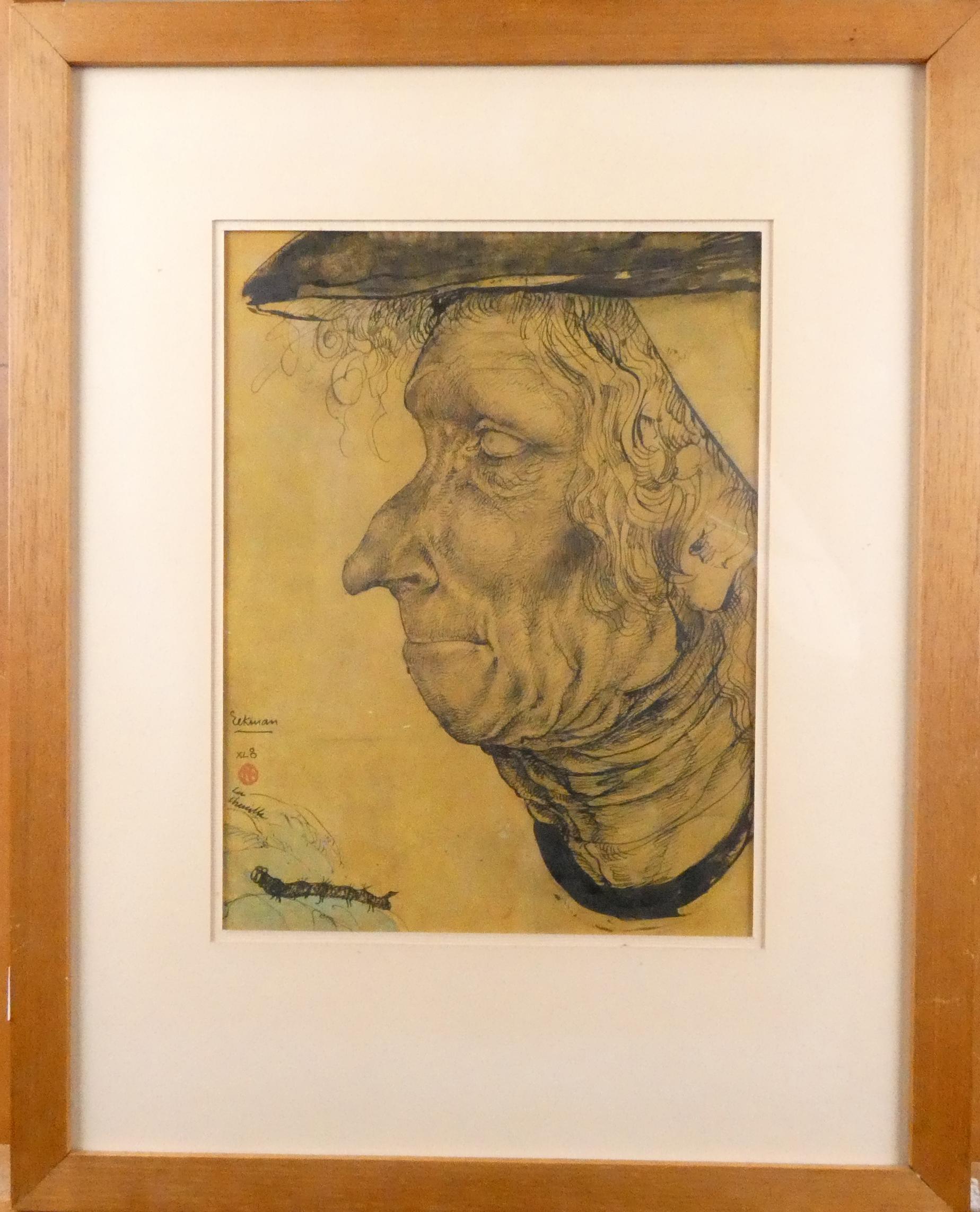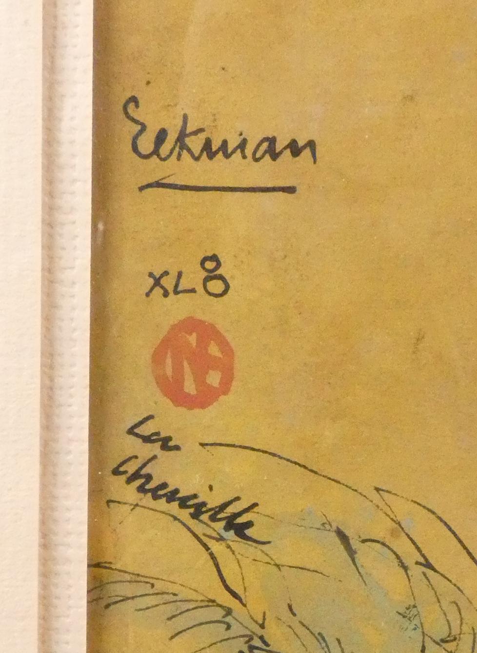 Tableau dessin à l'encre -La Chenille- signé *EEKMAN N.* (Nikolaas Mathijs) (1889, 1973) 29x22cm cadre bois sous verre