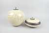 Céramique: Pots couverts en faïence signé *SELLESGAH M.* (Mieke) (1954) décor réalisé selon la technique japonaise Raku H: 12 et 24cm (pt ecl sur pointe de couvercle)